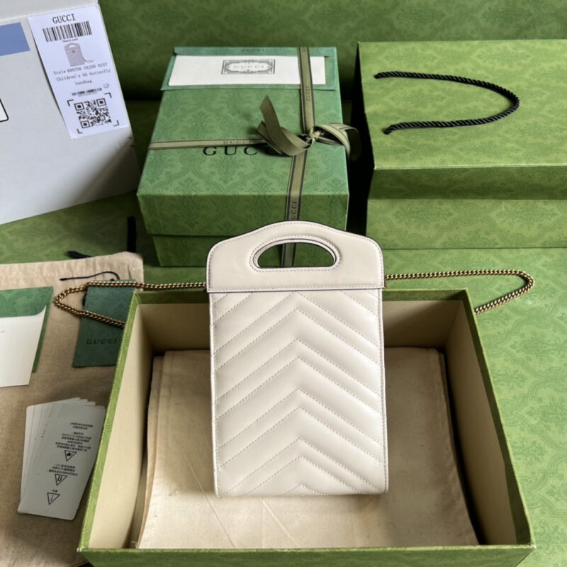 💖GG Marmont series mini handbags, as a selected classic series cherished by the brand, GUCCI BELOVED selects Gucci symbols that have been baptized by the years in an eye-catching way. The GG Marmont collection is now closely associated with quilted leather and Double G accessories. The monogrammed detail draws inspiration from belt buckles from the 70s, linking the brand’s origins and its founder to different periods in contemporary history. White quilted chevron leather, antique gold tone hardware, textured moire suede and microfiber blend lining Double G. Dimensions: 14(W) x 23(H) x 4.5cm(D)