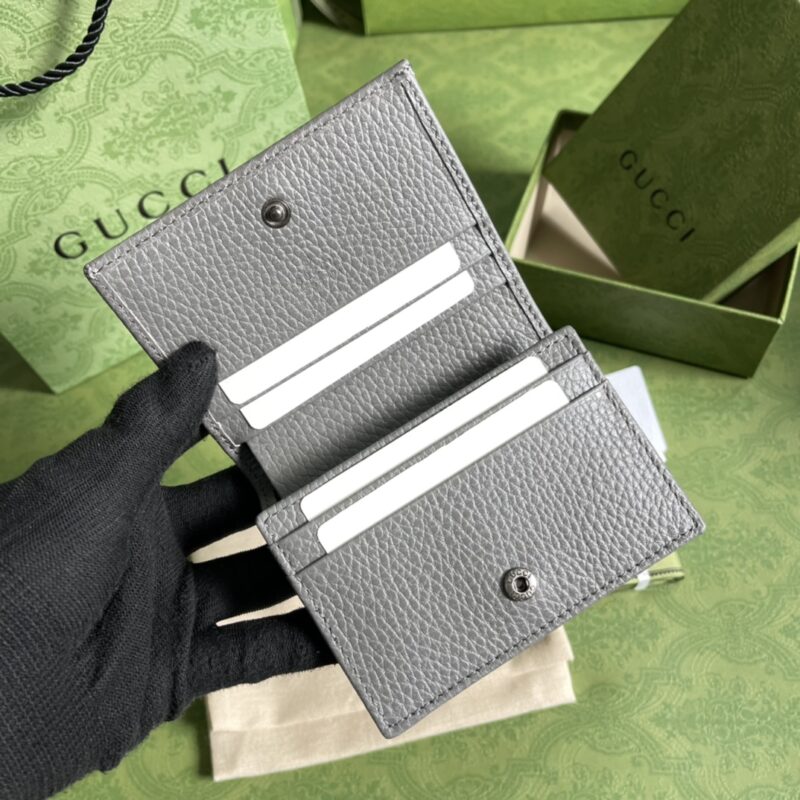 Marmont Series Card Holder This GG Marmont Series card holder is made of classic and durable black leather, adding another classic to the “Aria-fashion Aria” series. The Double G hardware, inspired by the belt buckle design of the 70s, is updated on this wallet in tonal resin. The classic design is combined with a monochrome color scheme for a contemporary look. Size: 11*9*3cm. Colour: Grey/Full Leather.