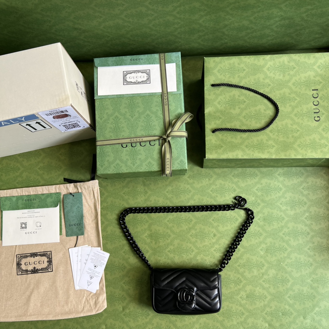 GG 👉Marmont chain macaron series black mini handbag, equipped with a key chain, which can be used to tie this bag to another larger handbag. Soft, structured shape with flap closure and GG hardware. Metal hardware takes inspiration from classic 70s designs. Crafted in quilted chevron leather. Size: 16.5×10.2×5.1cm