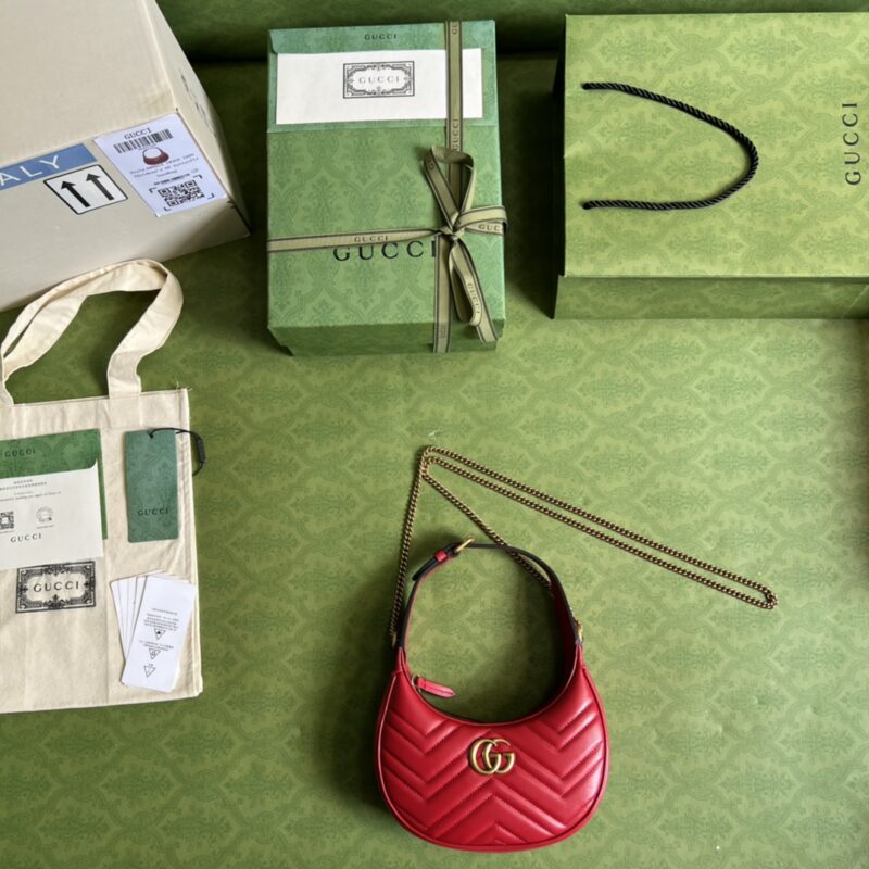 This mini bag exudes vintage style with its crescent silhouette and textured red leather. Retro elements are combined with archival designs or fashion details to present a refreshed design that transcends time and space constraints. The brand’s deep fascination with the past is everywhere, and this petite accessory is no exception. The material is soft and natural grain full cowhide from the counter and high-grade smooth shiny bronze hardware on the market. Dimensions: 21x11x5cm.