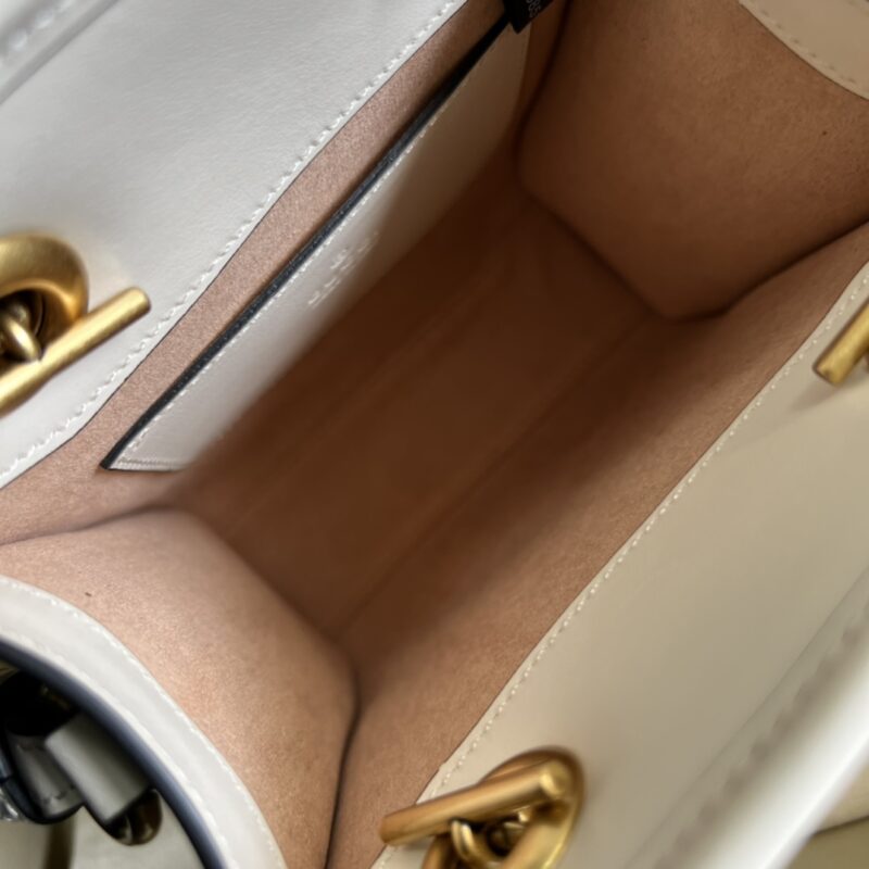 The mini handbag exudes a rich retro style with a new chain bag silhouette and textured white leather material. Retro elements are combined with archival designs or fashion details to present a refreshed design that transcends time and space constraints. The brand’s deep fascination with the past is everywhere, and this petite accessory is no exception. The material is soft and natural grain full cowhide from the counter and high-grade smooth shiny bronze hardware on the market. Dimensions: 16x19x7cm.