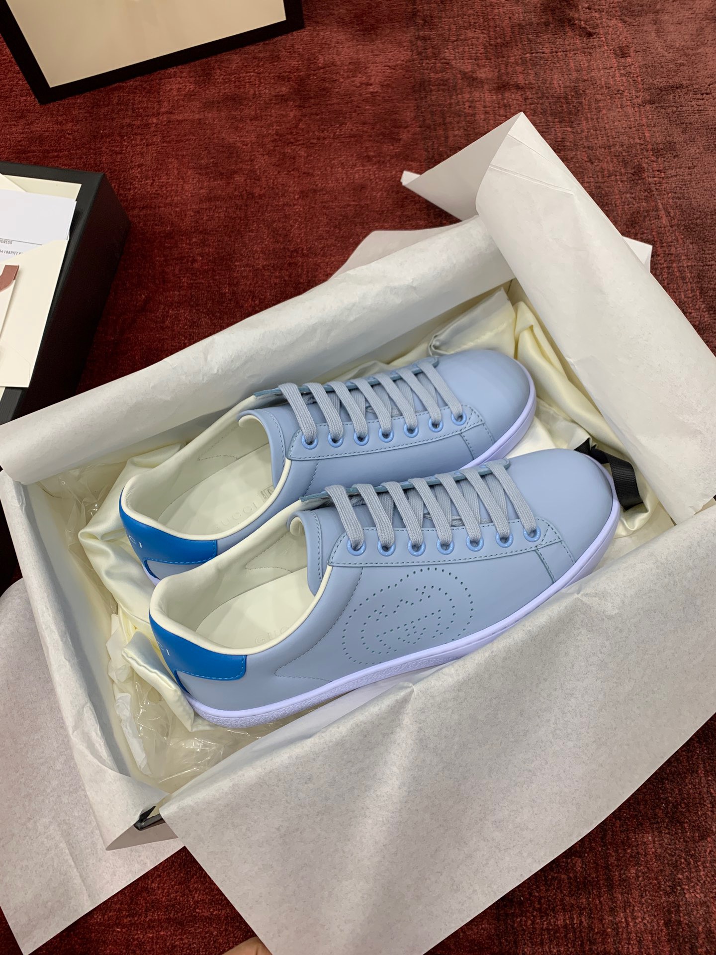 Gucci Ace Sneakers Purchasing Grade “Tonghua Ocean Blue” Men’s and Women’s Same Style Women’s size 34/35/36/37/38/39 counters are one size larger (The one in picture is for women)