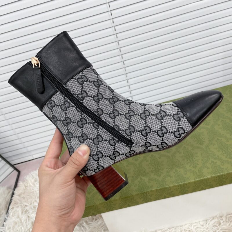 Gucc’s Latest Short Boots. Women’s Boots Simple and fashionable; stitching color; square toe; 5cm heel height. Material: Presbyopic stitched top layer cowhide. Inside: Sheepskin lining with feet. 5cm square heel. Leather outsole. Sizes: 35-40