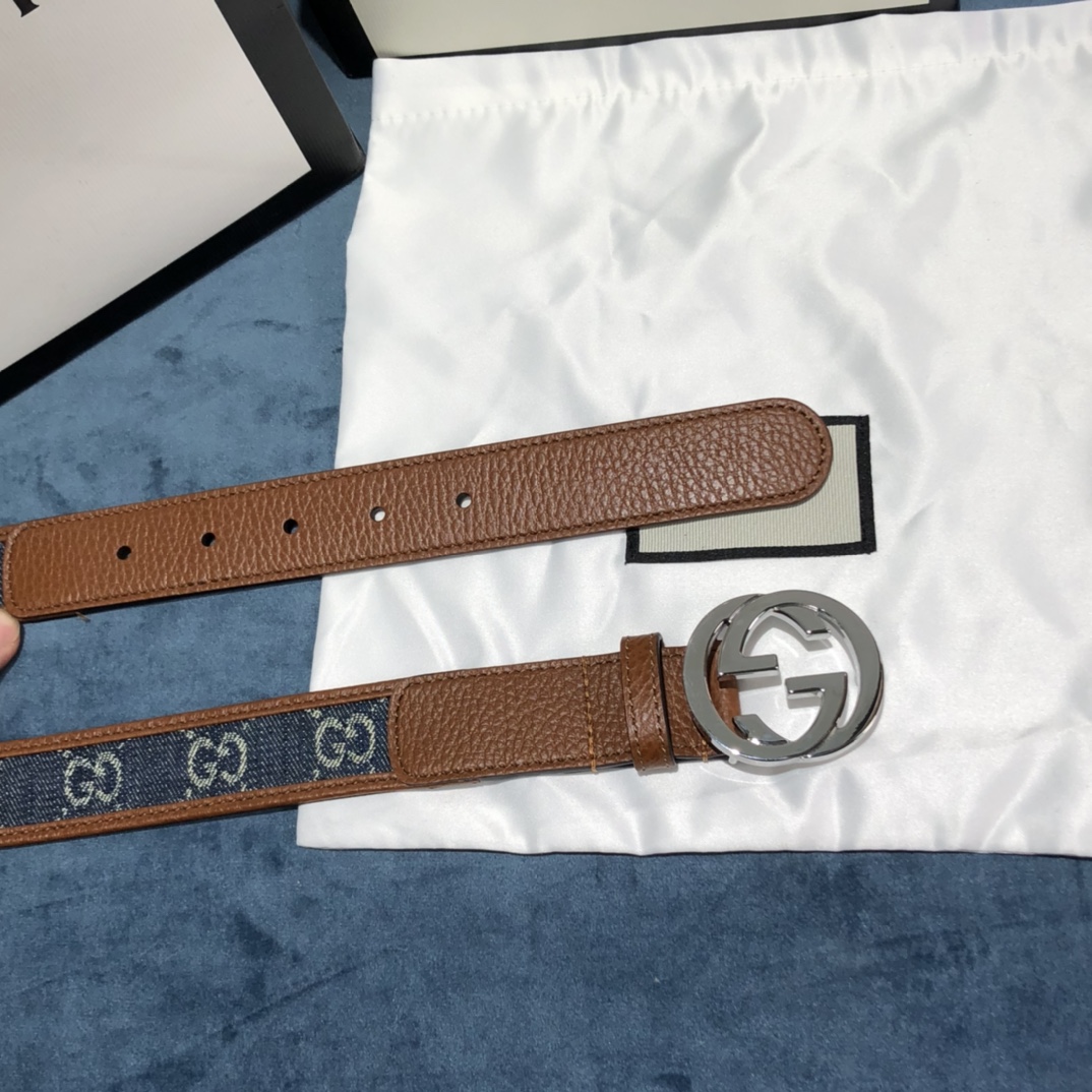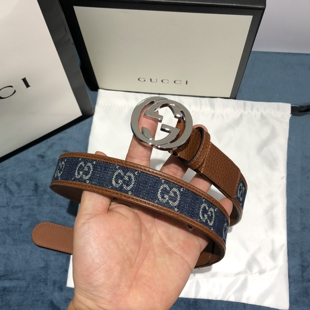 Gucci Denim&Leather Belt