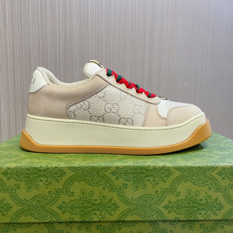 The upper is made of color-rubbed cowhide stitched with classic double G cloth fabric, the towel cloth is delicate and sweat-absorbent and breathable, the foot pads are injected with latex, and the private mold is 6cm thick TPU two-color sole.