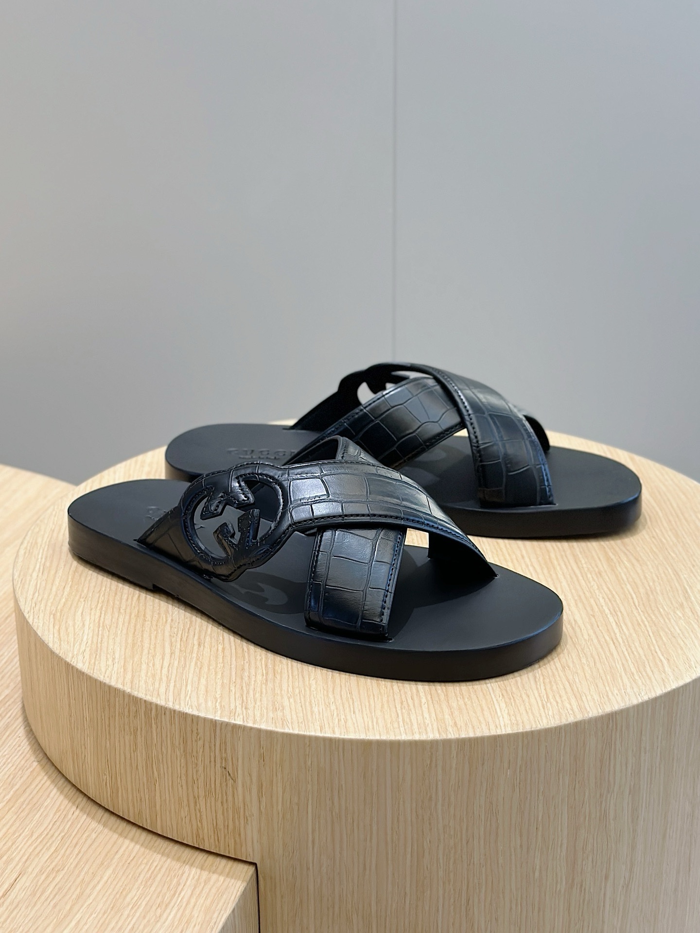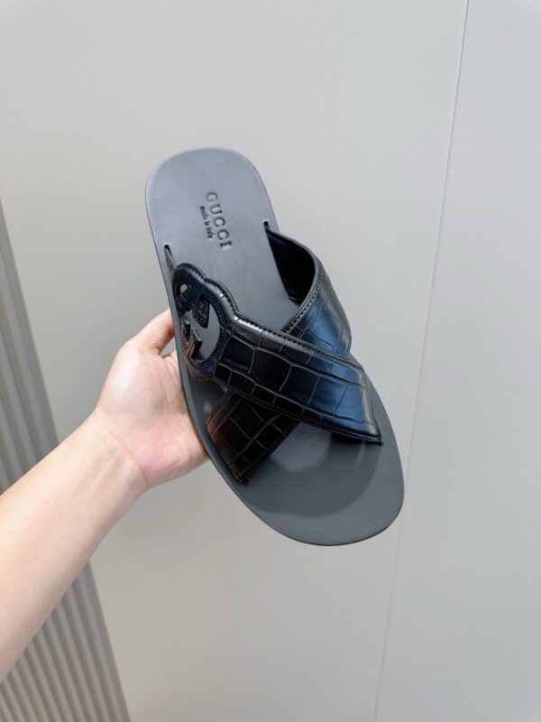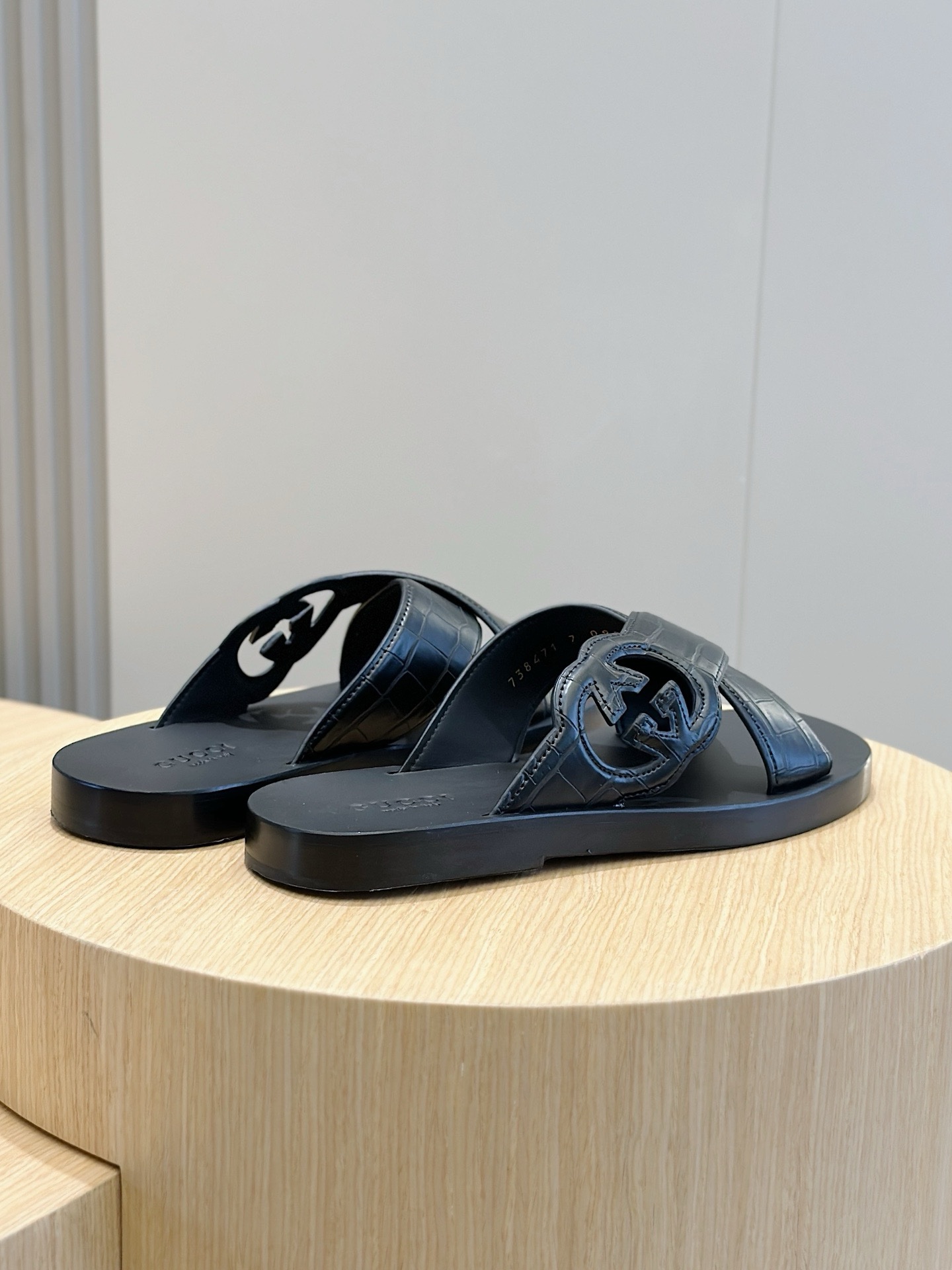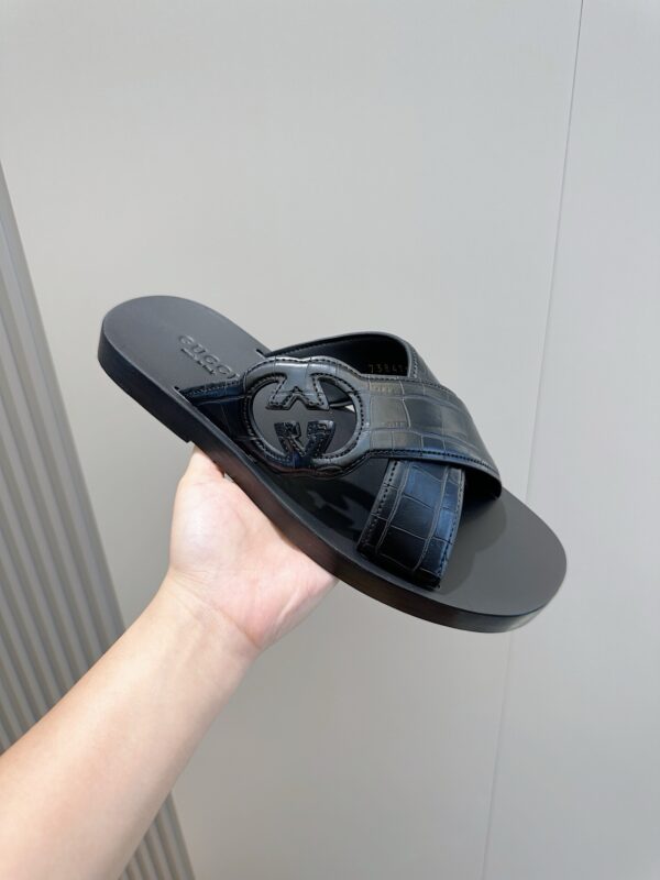 The classic design of the 1970s brought glory to the brand. Inspired by this iconic era, the interlocking double G is reinterpreted as a large hollow detail on this black leather slipper. The new series explores the brand’s classic symbol elements in a new way, paying tribute to the enduring elegance.