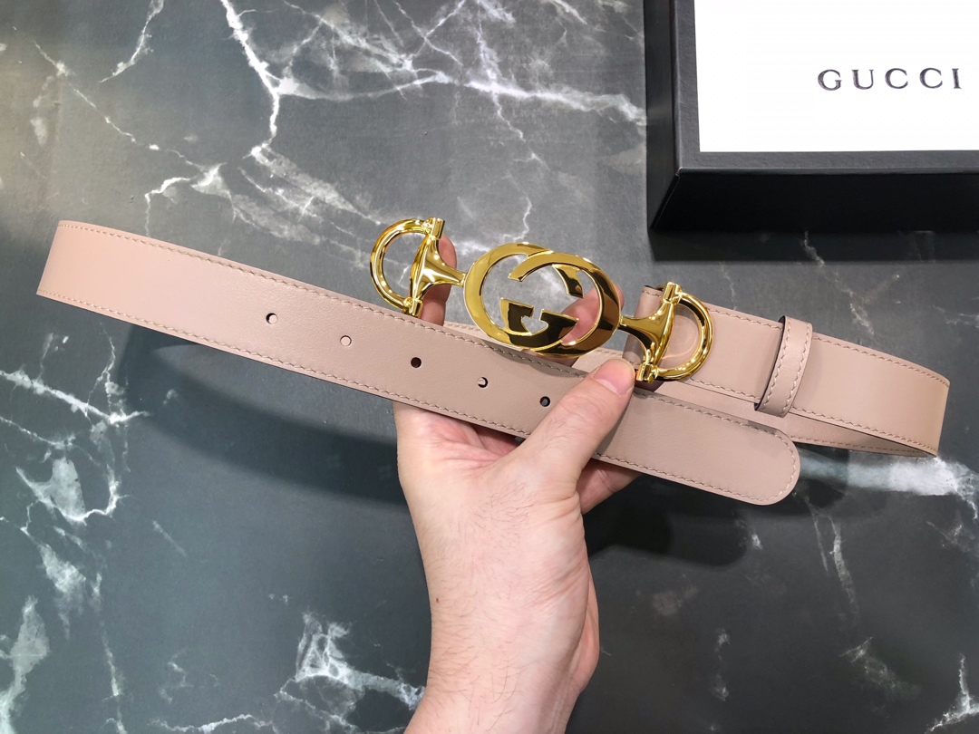 New black leather belt with new interlocking G horsebit, which integrates two classic logos of the brand. Width 3cm ZP size ZP open version. Specialized counter model 2408114009