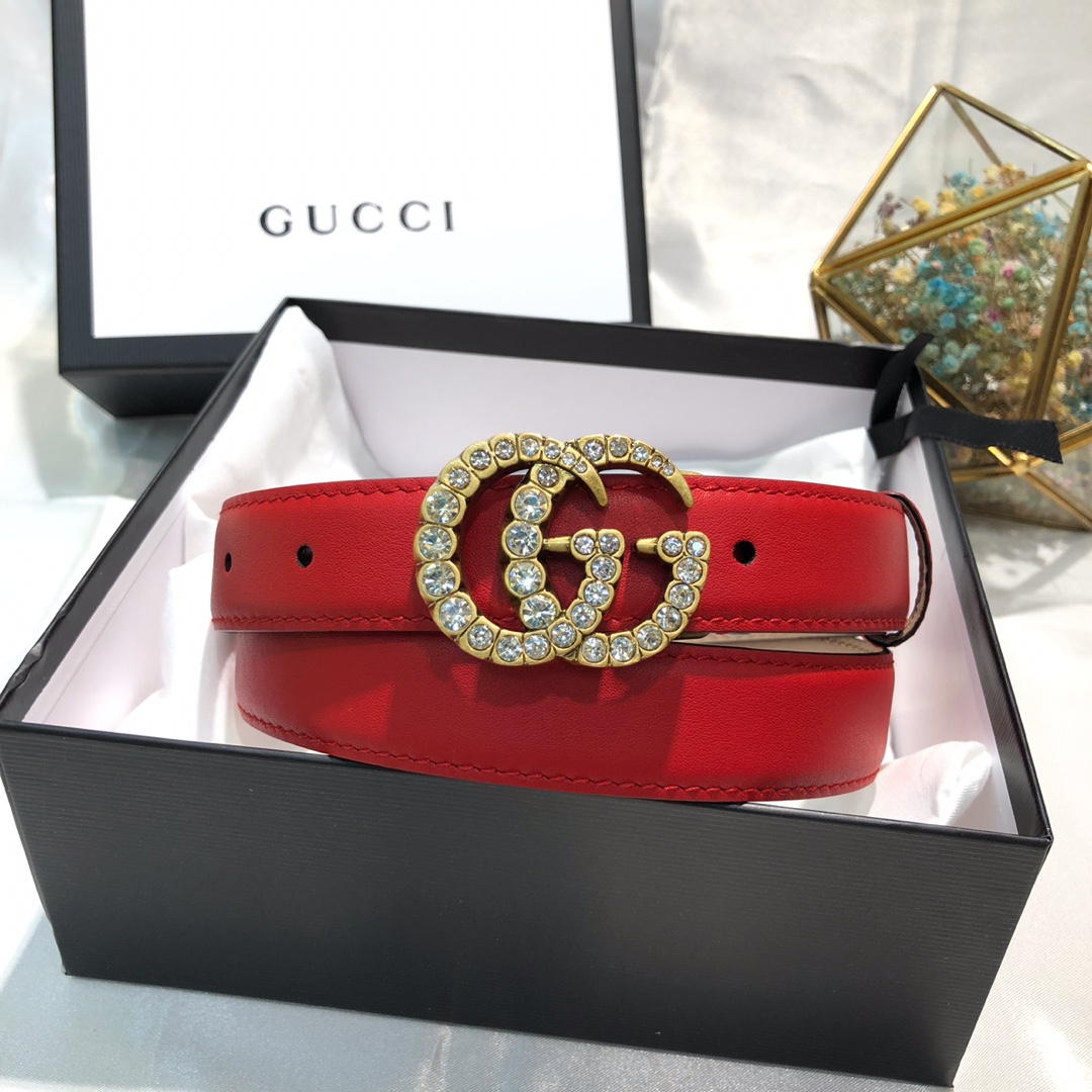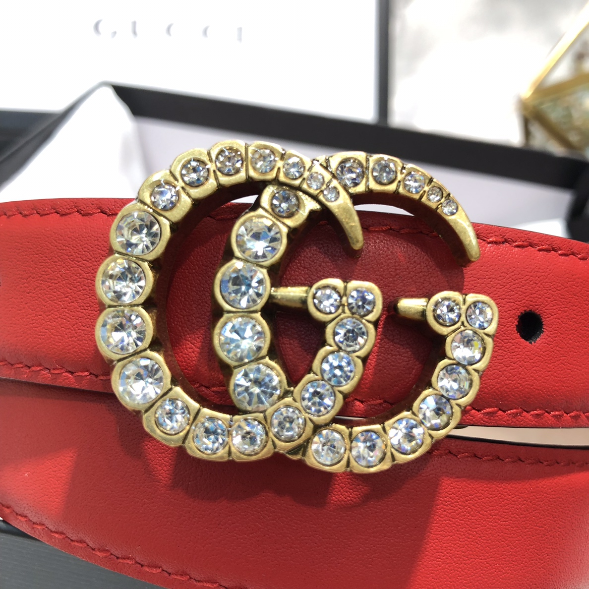 Gucc leather belt GG is inspired by classic design, with diamond effect rivets to show the charm, as a symbol of romance, diamonds run through the Gucci I series Width: 2.5cm 2408114879