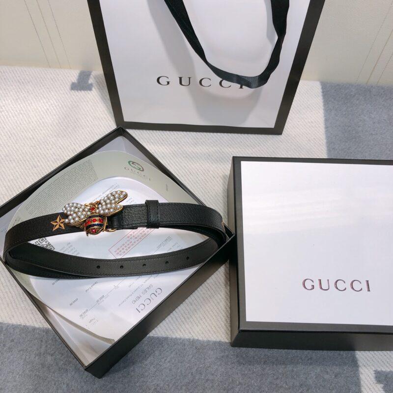 Gucci new product. Pigskin grain surface bronzing bee. Star pattern. Leather bottom soft belt. 2cm, classic and elegant. 2408114879