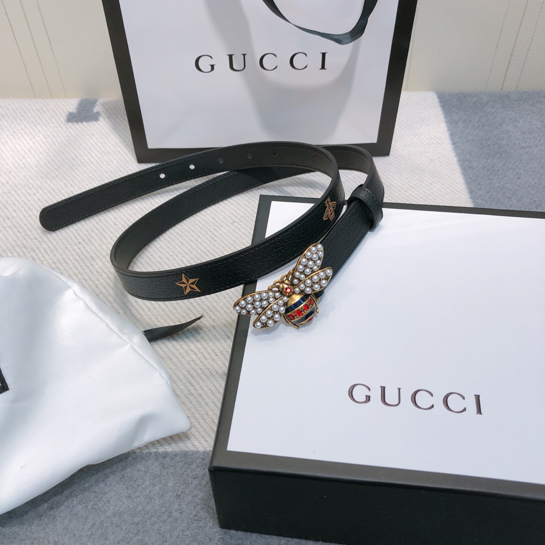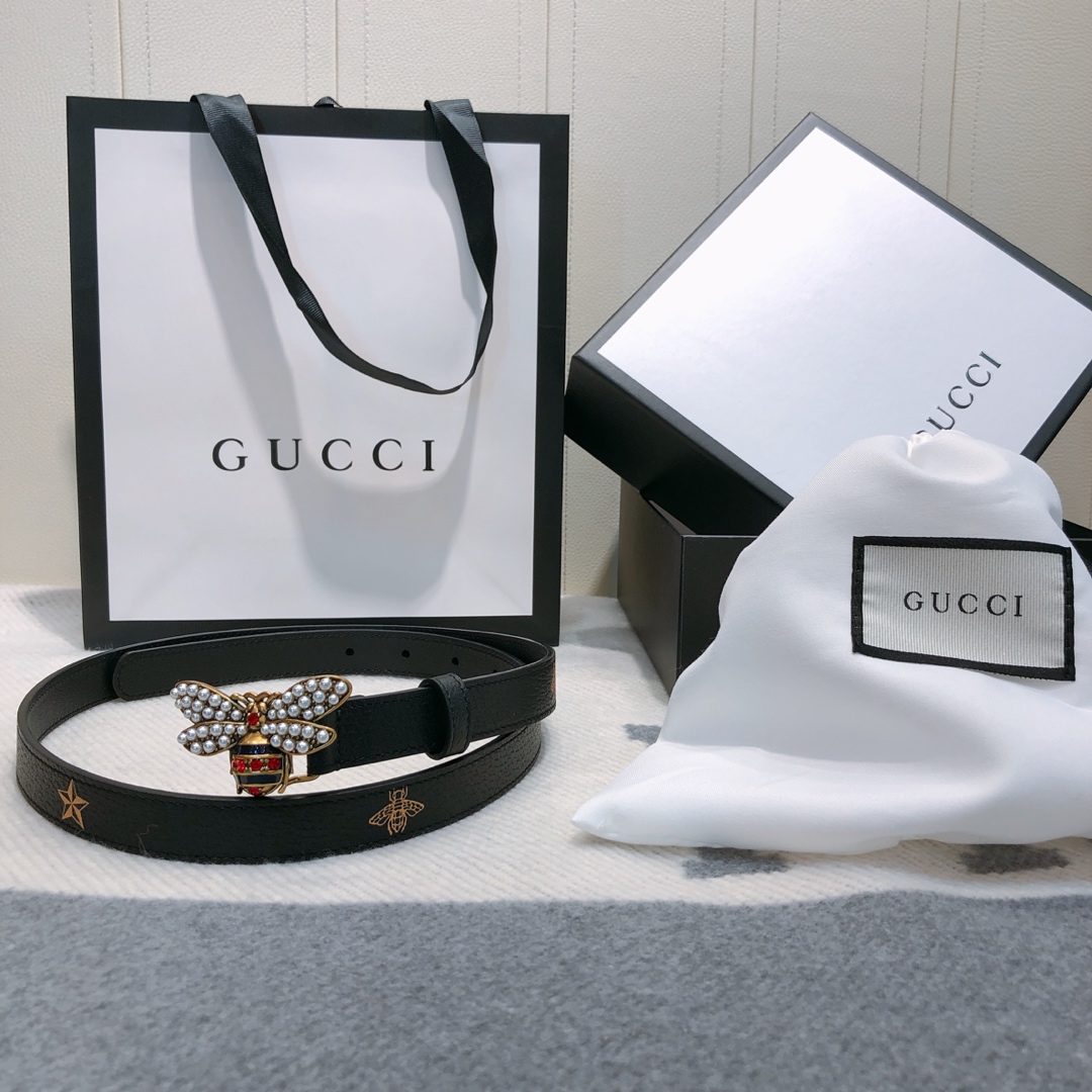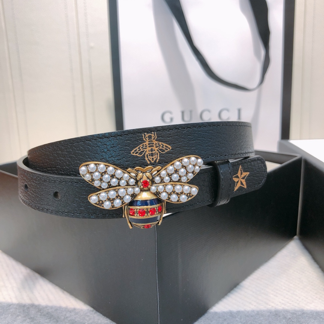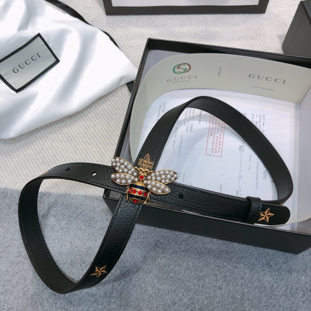 Gucci new product. Pigskin grain surface bronzing bee. Star pattern. Leather bottom soft belt. 2cm, classic and elegant. 2408114879