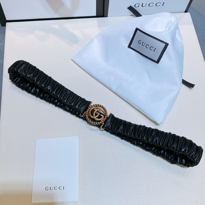 Gucci GG Vintage Gold Metallic Copper Hardware. Sheepskin Elastic Belt 3mm. 2808117877