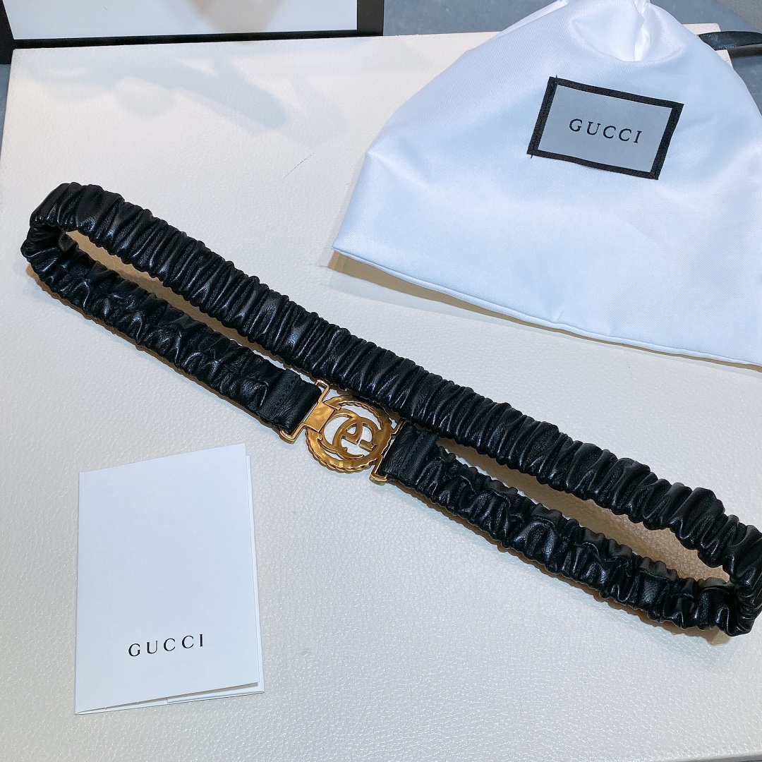 Gucci GG Vintage Gold Metallic Copper Hardware. Sheepskin Elastic Belt 3mm. 2808117877