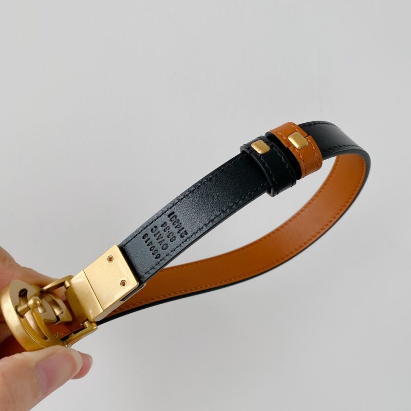 Caramel leather, black leather back with distressed gold-tone hardware. Double G buckle 2mm boutique Italian creation, this belt is suitable for low waist and high waist two ways of wearing.