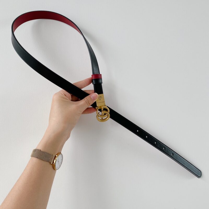Black leather, white leather back with gold tone hardware Double G buckle, 2mm boutique Italian creation. This belt is suitable for both low and high waist wear.