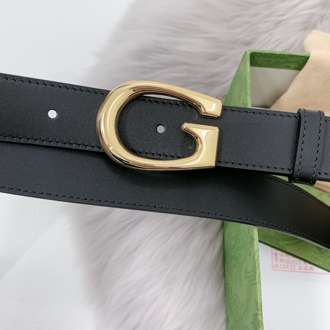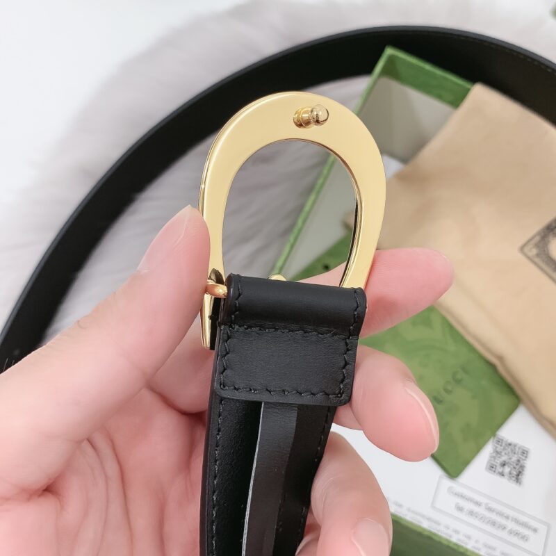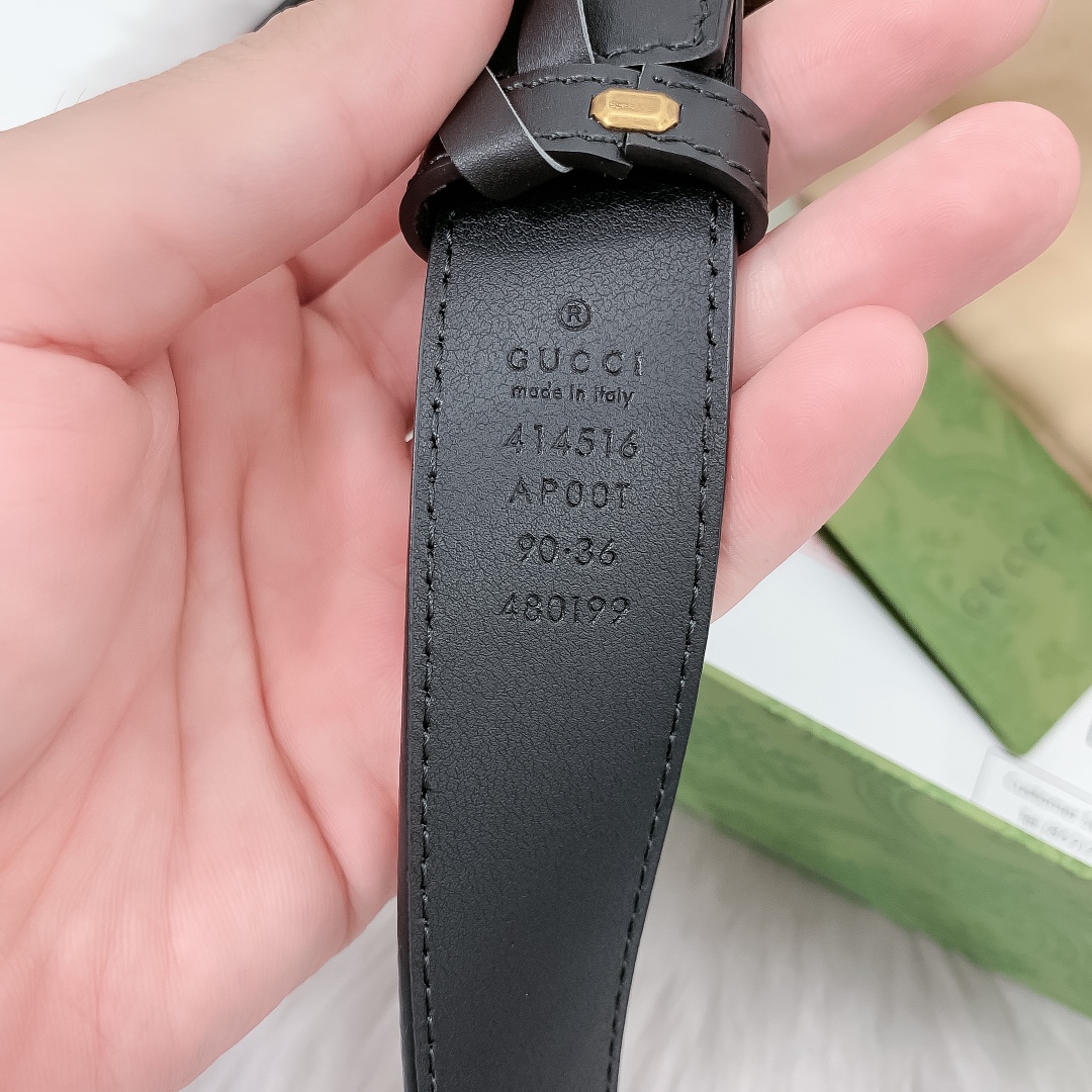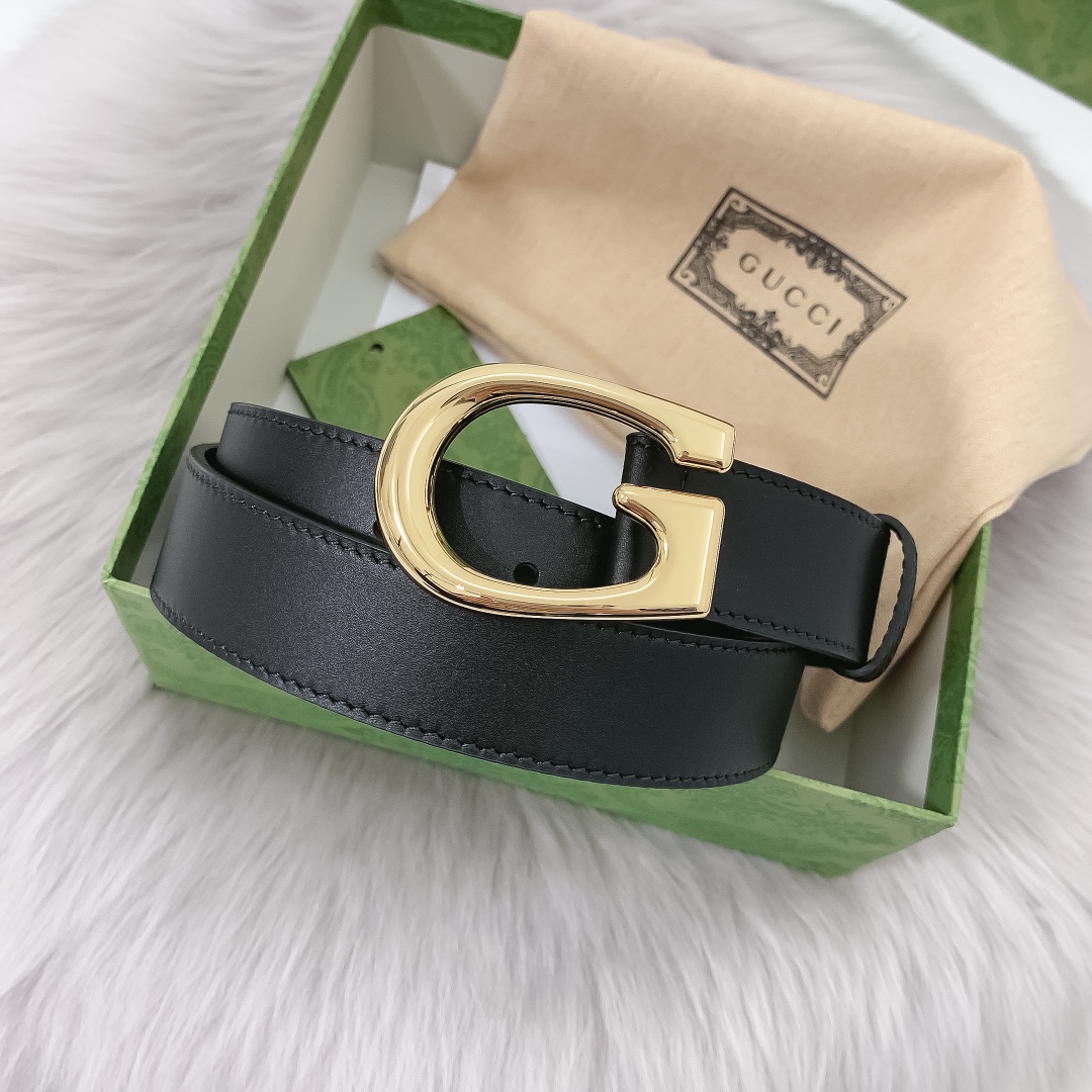 GUCCI’s narrow leather belt with the iconic G buckle has a look inspired by the Gucci archives of the ’70s, a period that had a strong influence on the label’s aesthetic. This belt is suitable for both low-waist and high-waist wearing styles, belt width: 30mm