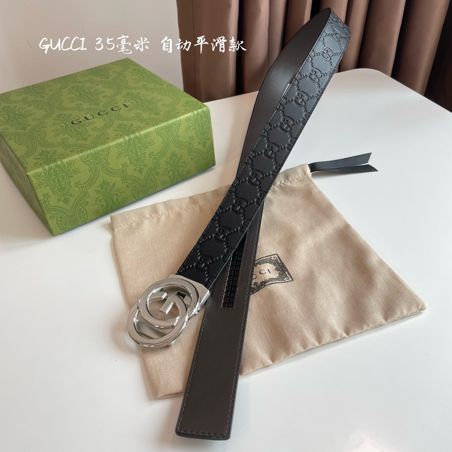 GUCCI-Automatic smoothing width 35MM. High-quality steel hardware with Italian imported leather belt. Adjustable length.