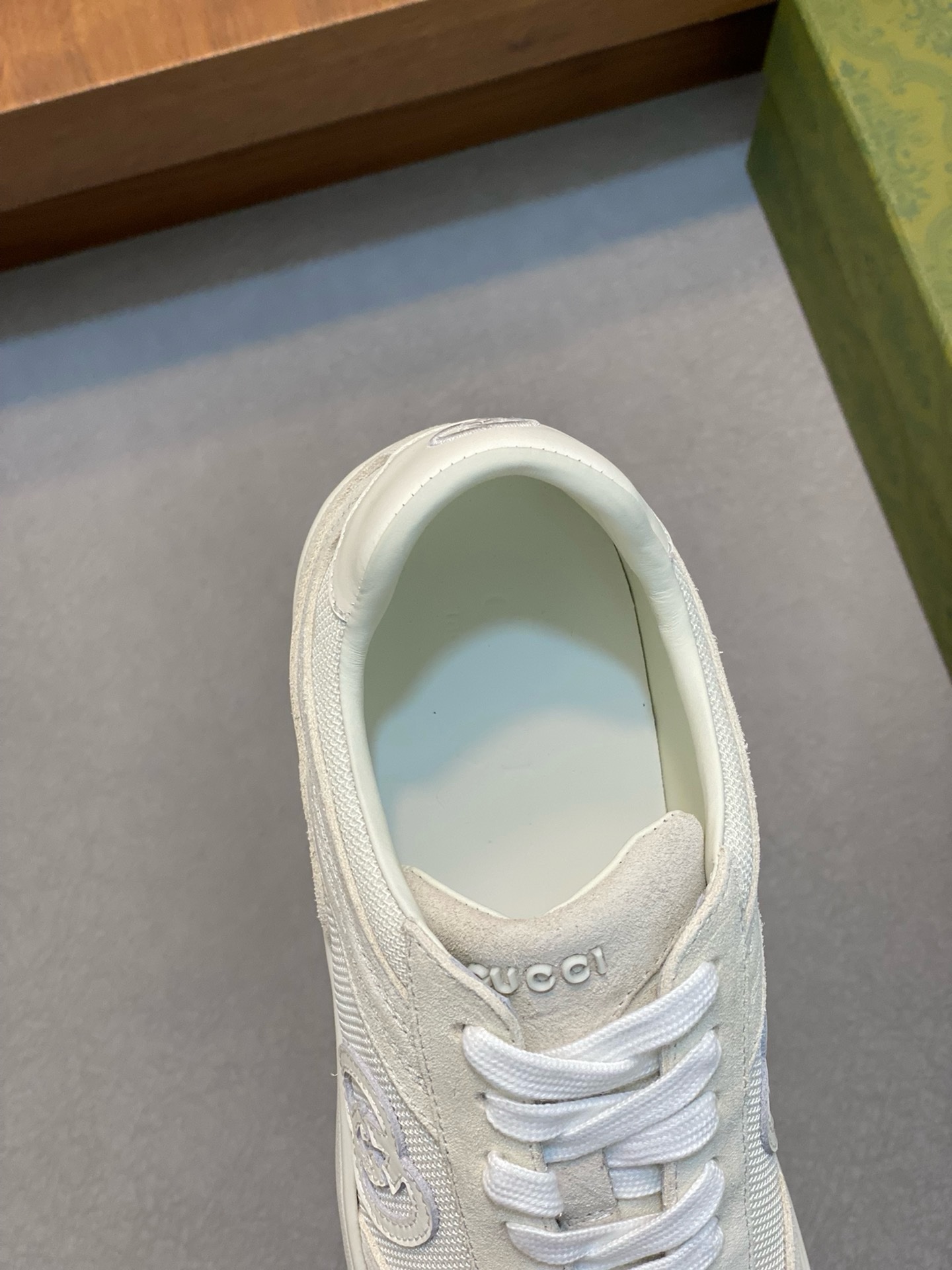 Made with GG denim fabric, showing unique style. Classic details such as GG printed embossed outsole, interlocking double G and “Gucci” embroidery add to the charm. Privately ground TPU original outsole, exquisite details, impeccable on the feet, flat toe has a retro flavor! Custom canvas, classic double G logo Spring and summer color matching is also very interesting!