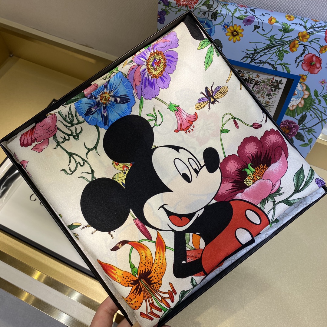 Gucci Mickey limited edition. 90*90cm. 100% silk hand rolled edge original single quality