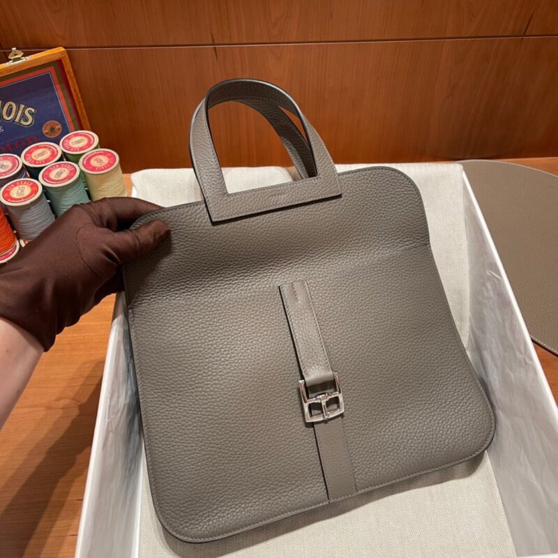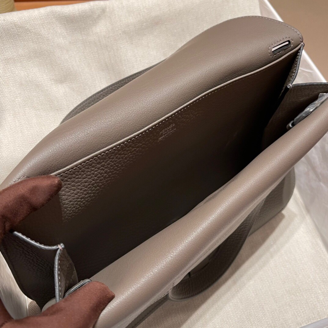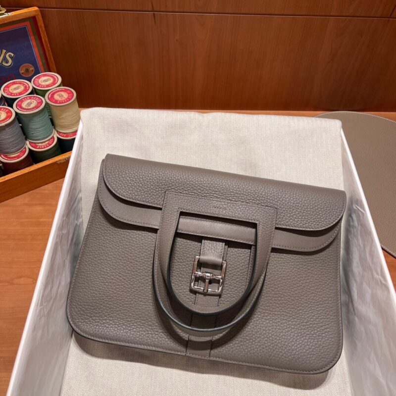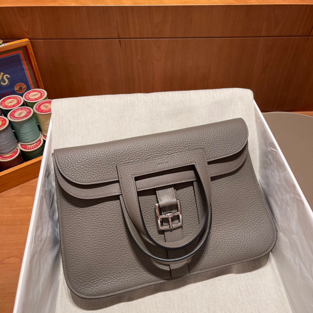 Halzan 31cm in Clemence Leather. 8F Pewter Gray (Etain)