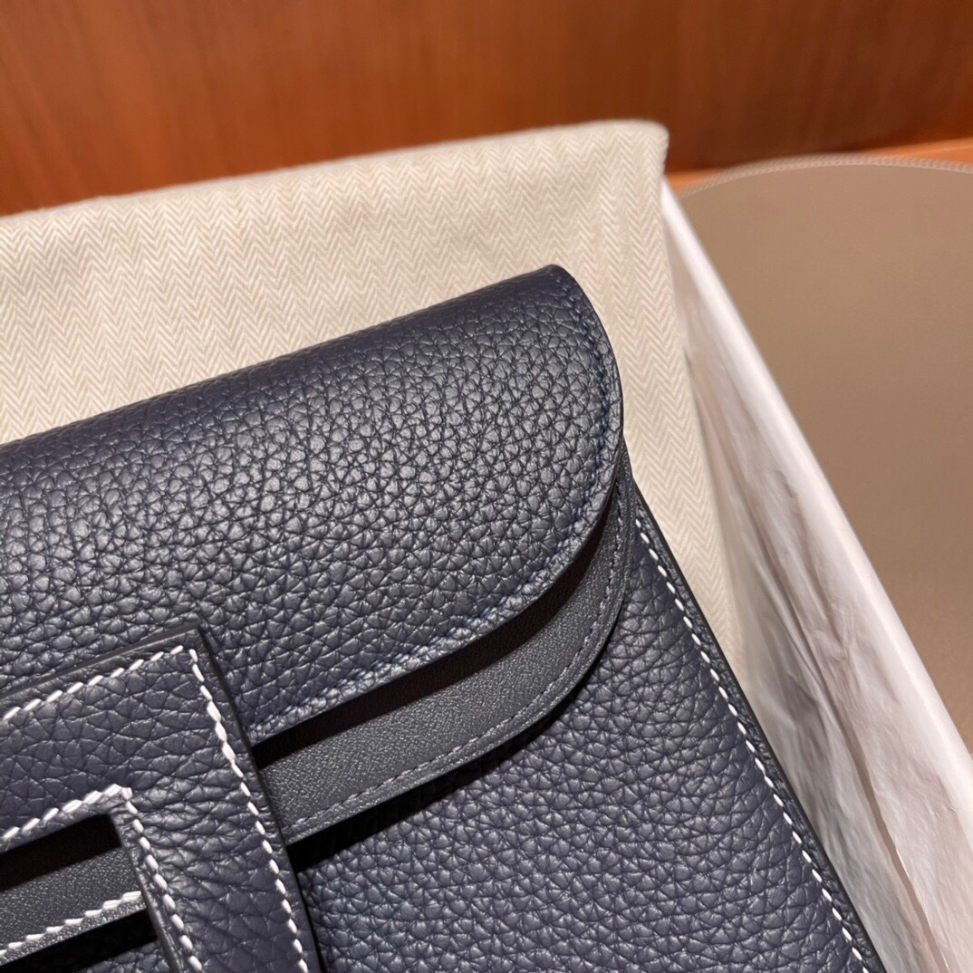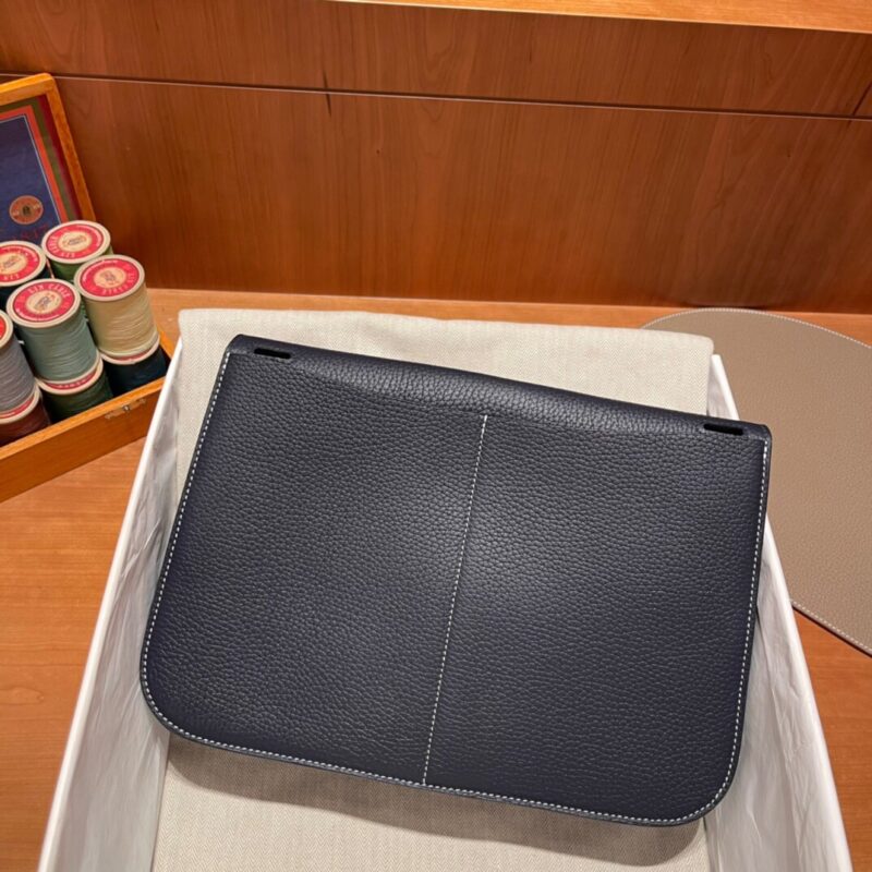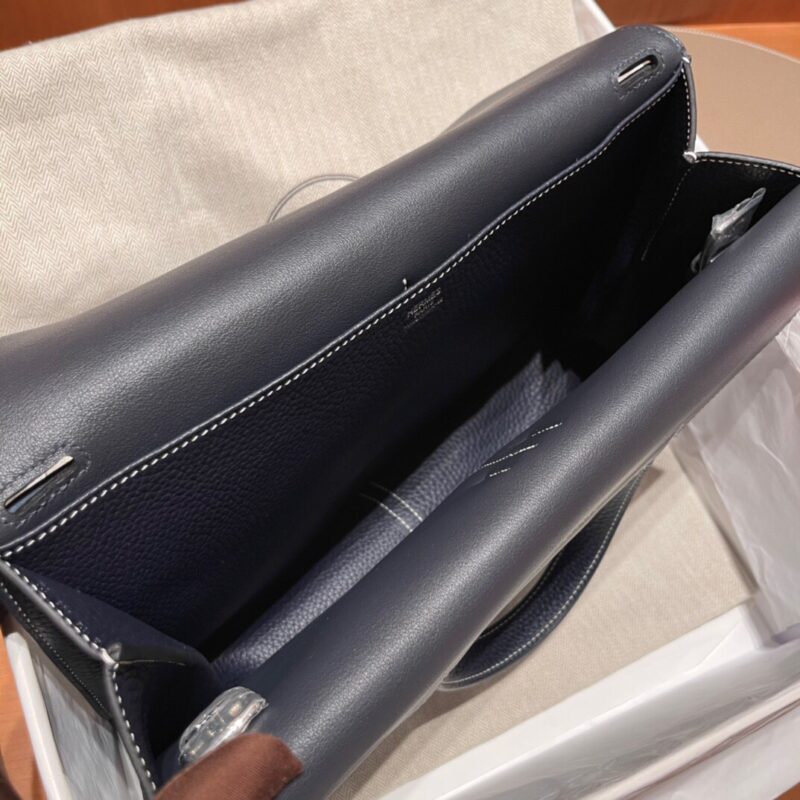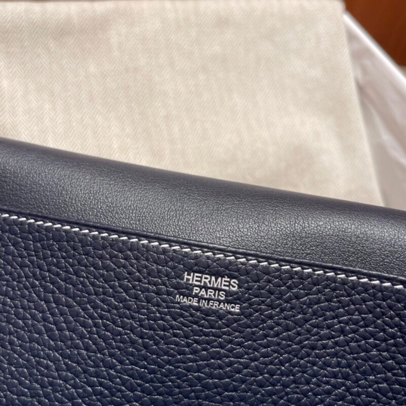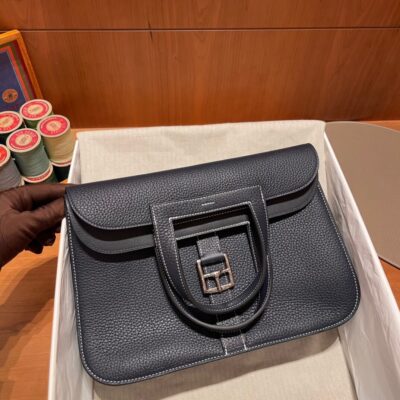 Halzan 31cm Clemence Leather 2Z Midnight Blue Inside, 76 Indigo Texture.