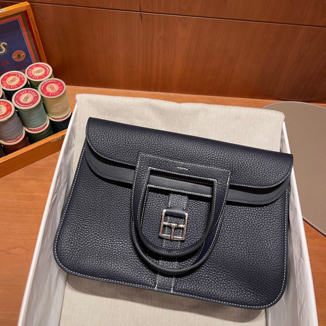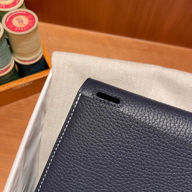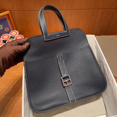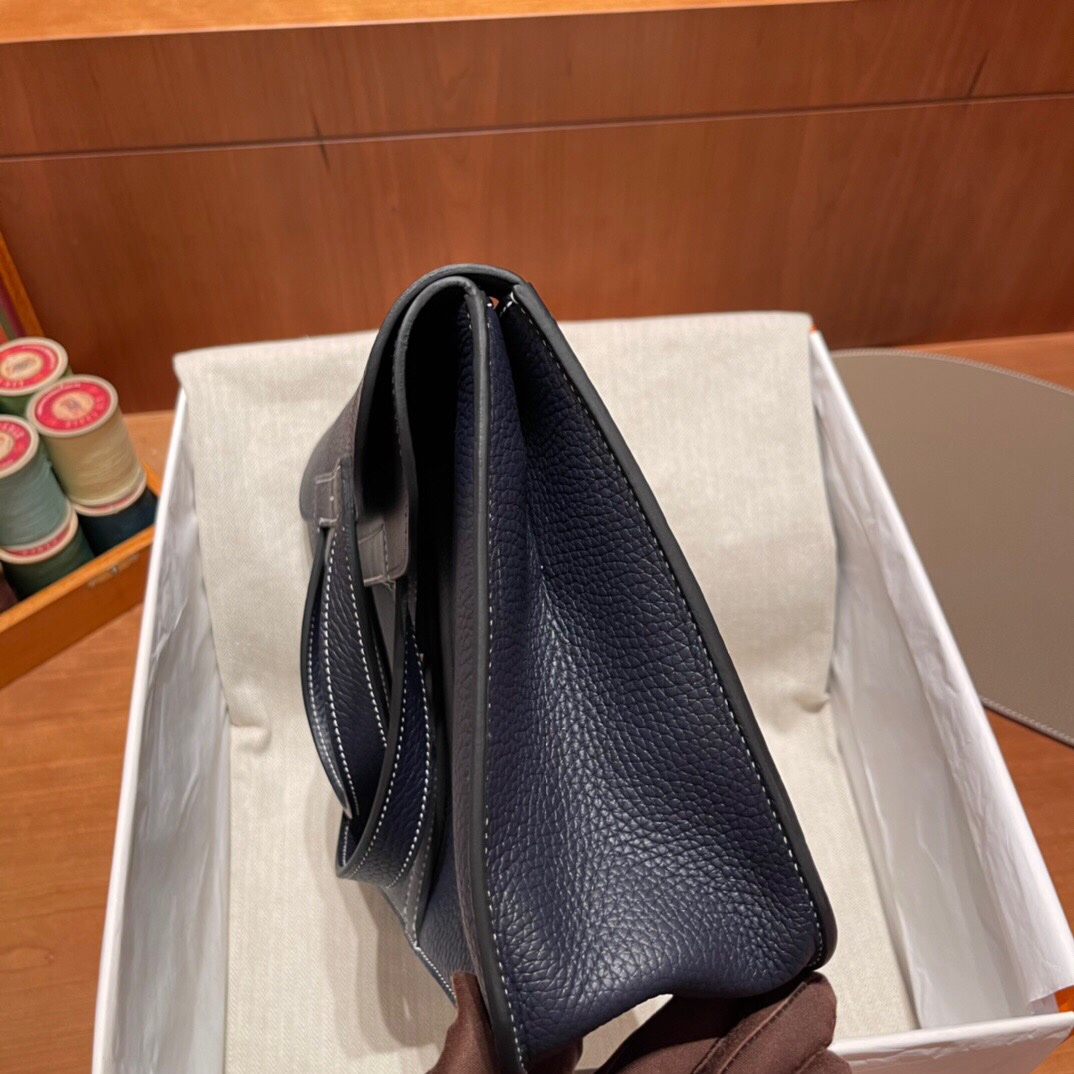 Halzan 31cm Clemence Leather 2Z Midnight Blue Inside, 76 Indigo Texture.