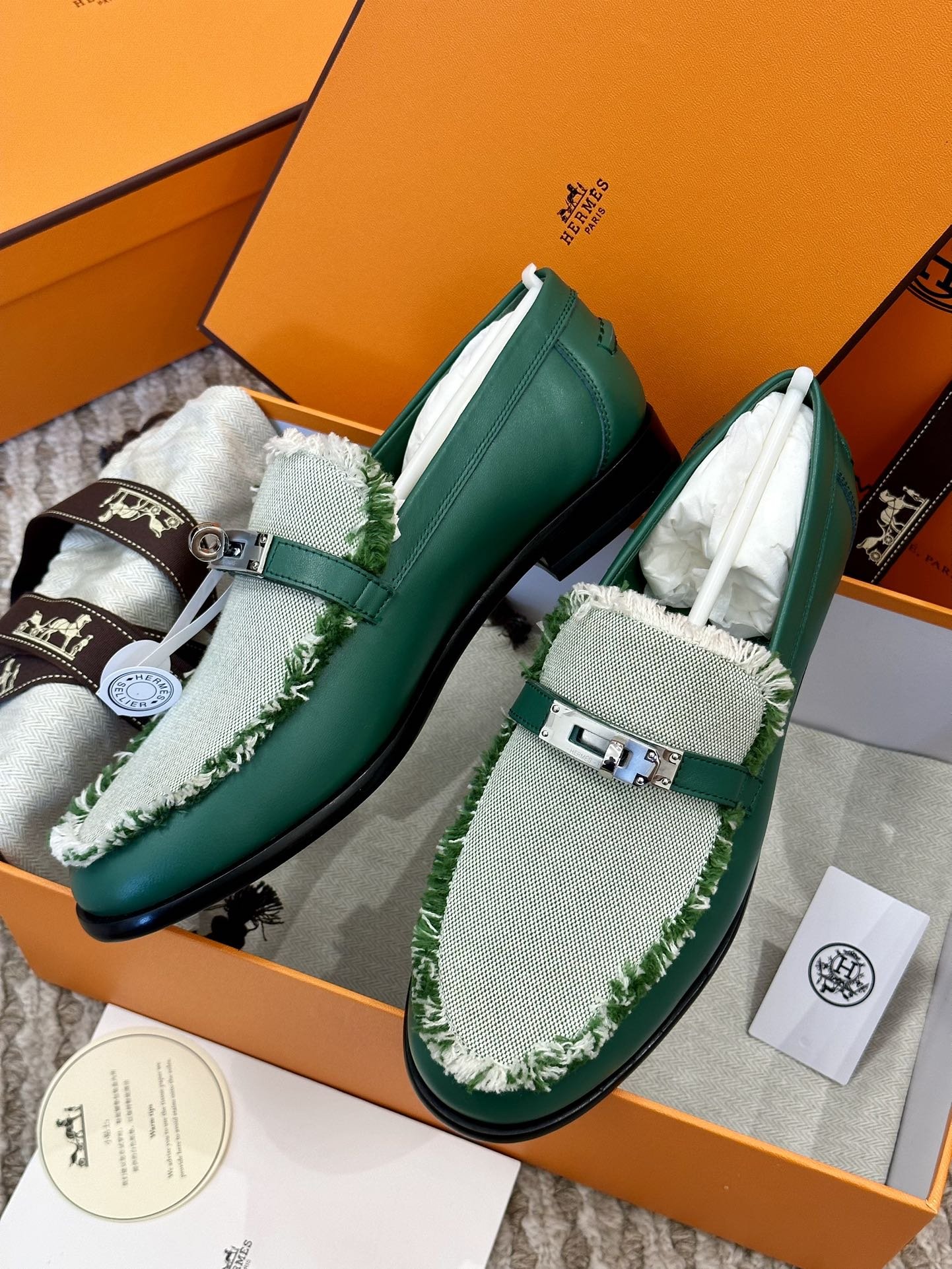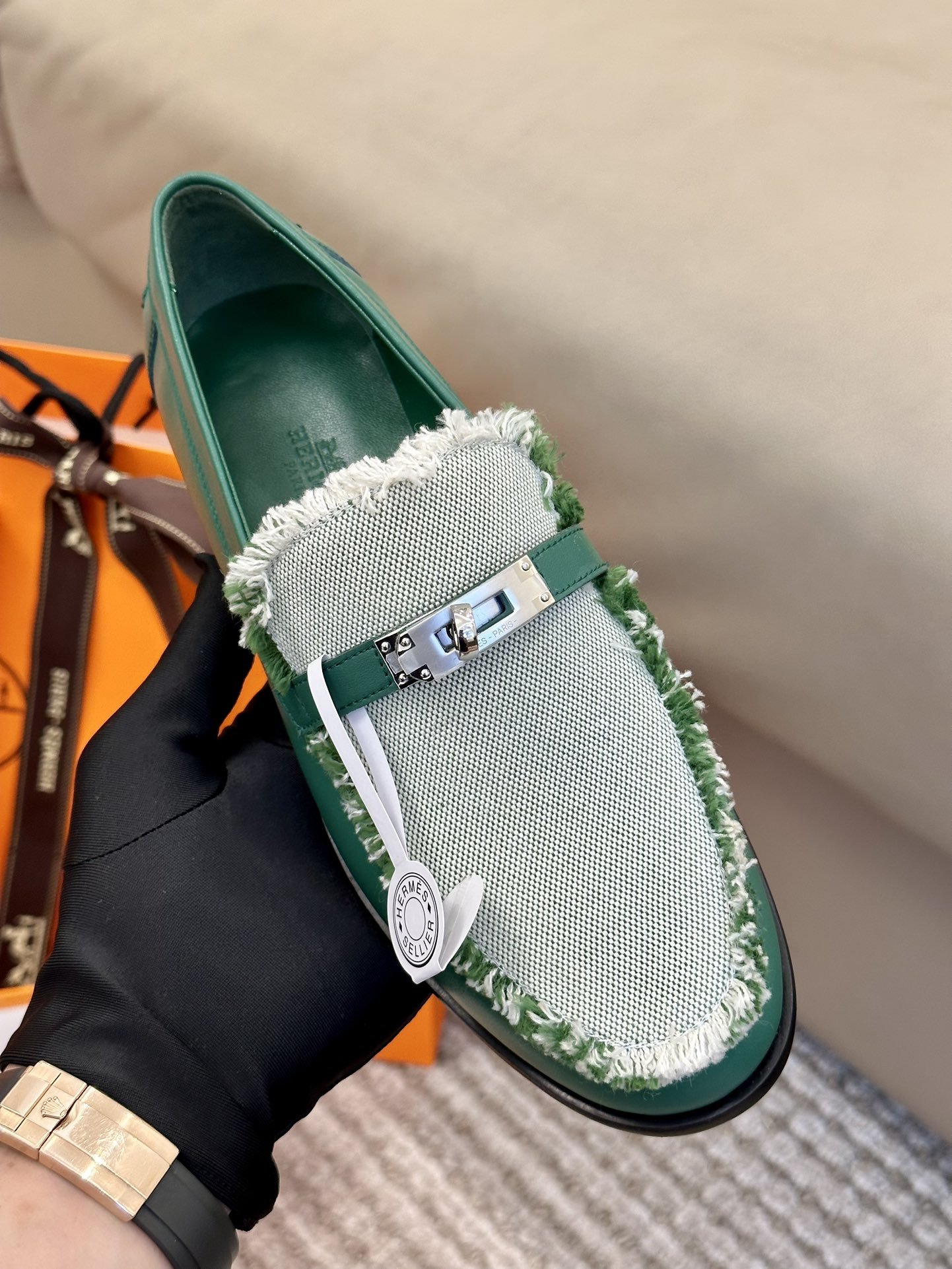Classic Kelly loafers, made of original calfskin, paired with the brand new canvas and tassels