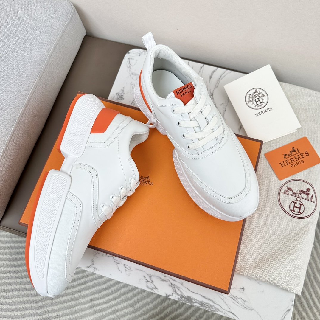 Hermes 2023 New Trainers Full leather/leather fabric of two kinds of fabric, original H-shaped sole, very beautiful and light, perfect foot feeling… Size 35-44