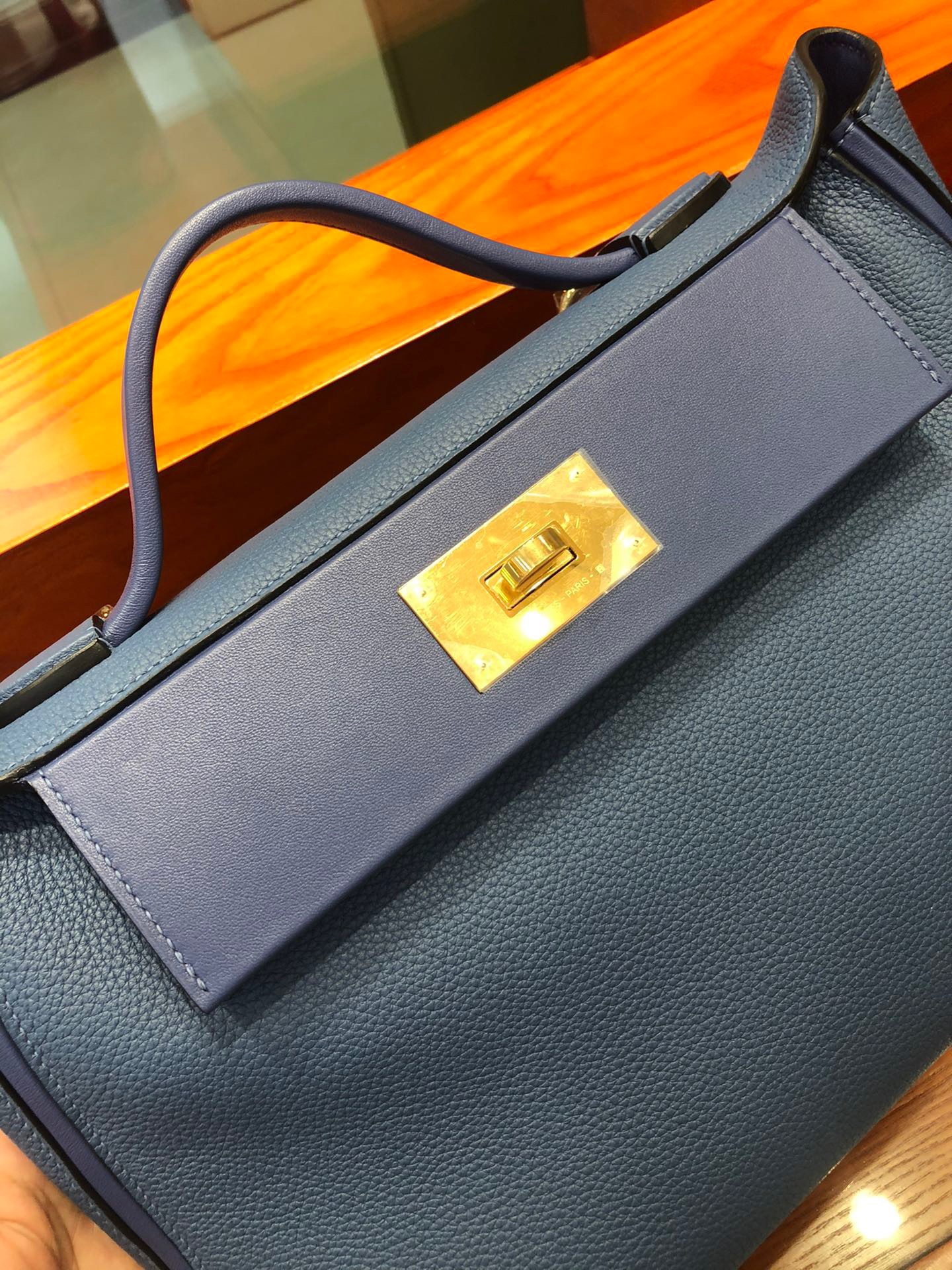 Hermes 24/24 Blue Agate 29cm in Evercolor&Swift