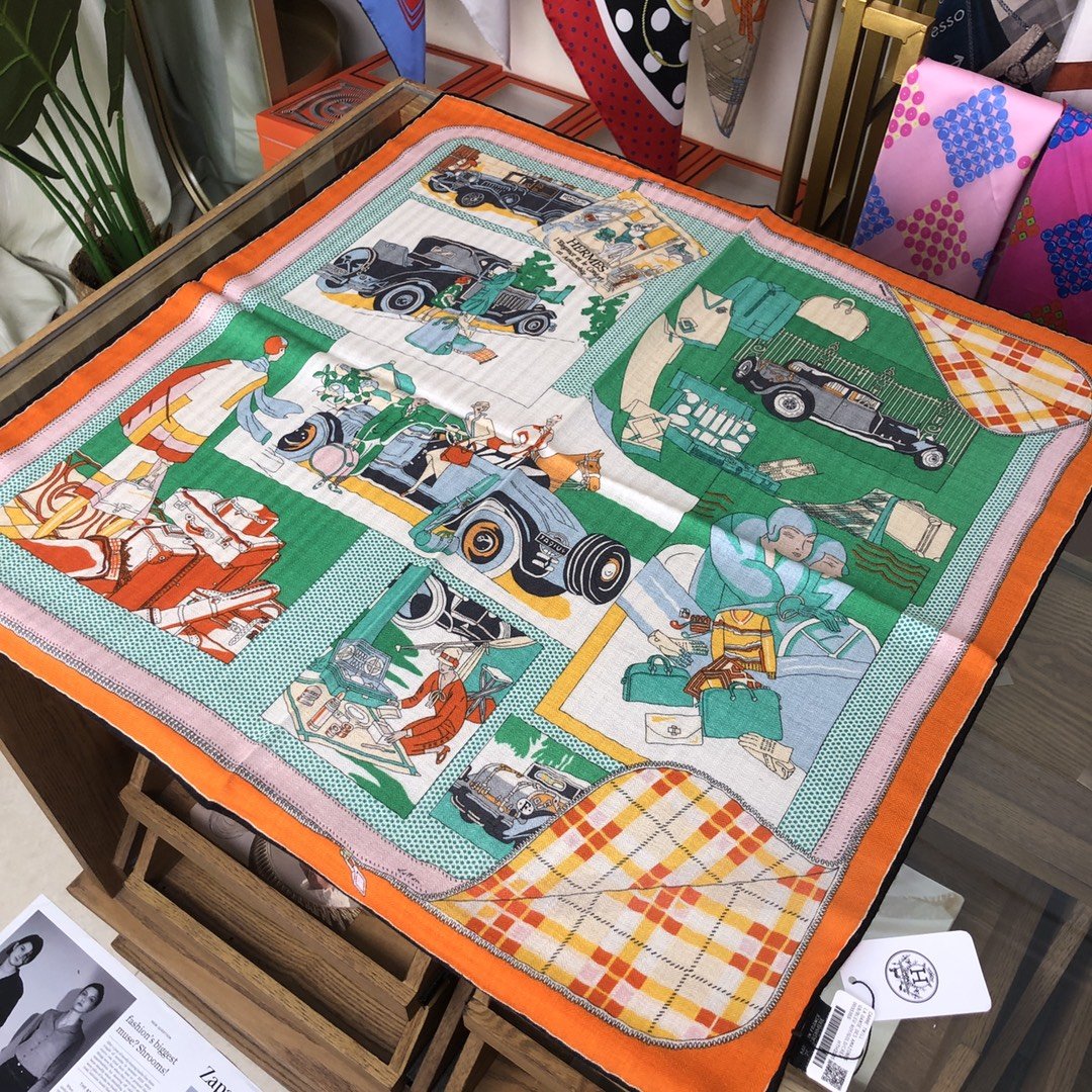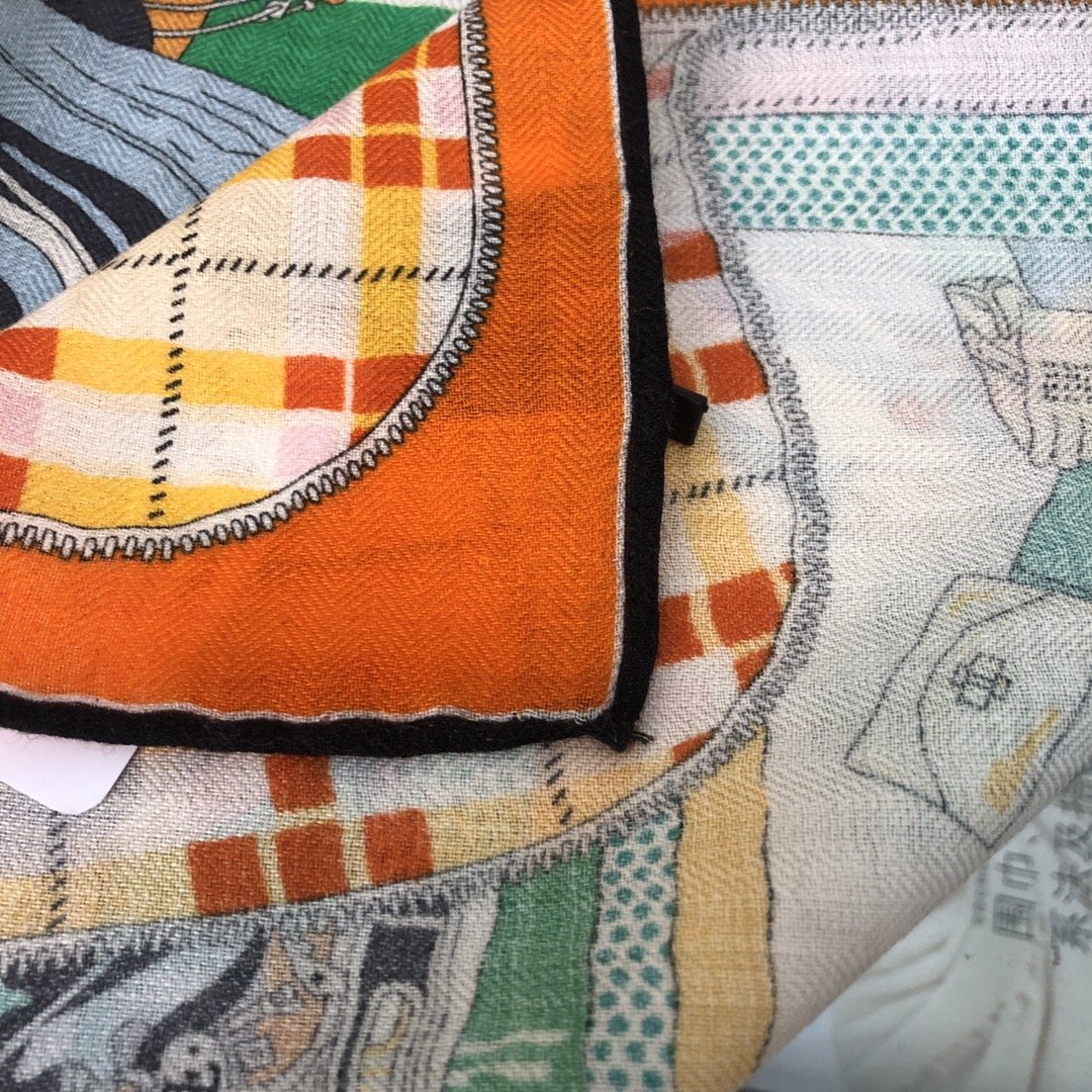 Hermes high-end velvet square scarf~ Size specification: 65*65cm, exquisite hand-rolled edges, top herringbone silk cashmere square scarf!