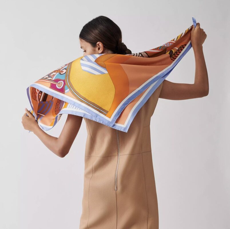 Hermes [Fantasy Saddle] 90cm Silk Square Scarf. This super beautiful saddle printed silk scarf adopts the cutting-edge technology of twill silk + hand-rolled edge, soft and light, easy to wear. Can be used all year round‼ ️Quantity is limited, place an order as soon as possible【Specification of this model: 90x90cm 100% twill silk】