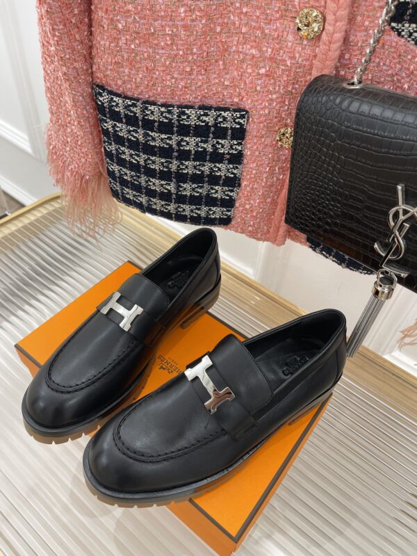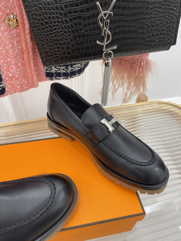 Ηermes Hermes classic autumn and winter H buckle loafers Super versatile shoe type is very delicate pedicure type Good-looking and exquisite, the first choice for temperamental women The color is very retro, it looks good in autumn and winter Glossy H buckle, simple and elegant, very suitable for office workers The glossy model has the feeling of a business elite👸🏼 Slightly heeled, not too sloppy or tiring The leather surface is exclusive customized sheepskin, which is consistent with the original version The H buckle is custom hardware, it will not fade and is not easy to oxidize The inside is custom-dyed mixed sheepskin according to the original version, sweat-absorbent and breathable 😉 The original consistent leather welt non-slip and durable outsole Size: 35-39 (40 customized)