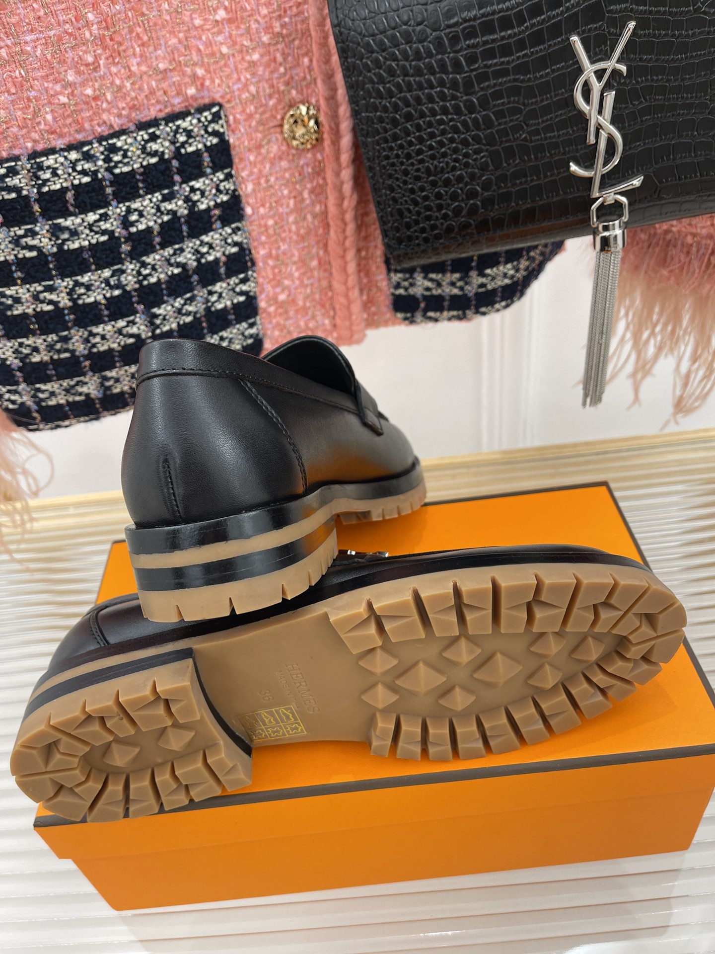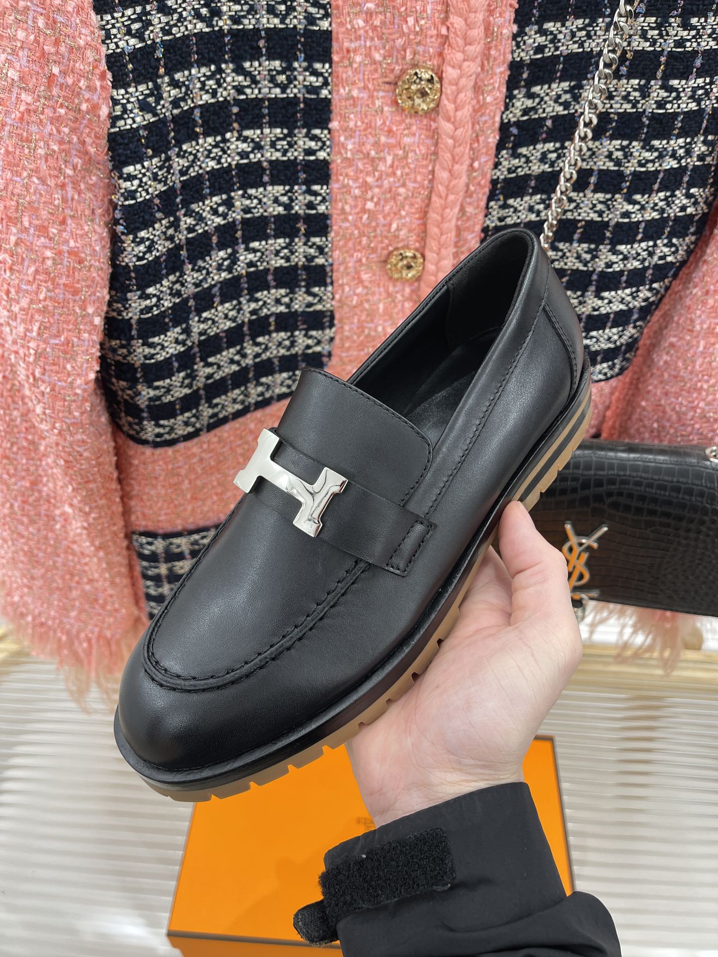Ηermes Hermes classic autumn and winter H buckle loafers Super versatile shoe type is very delicate pedicure type Good-looking and exquisite, the first choice for temperamental women The color is very retro, it looks good in autumn and winter Glossy H buckle, simple and elegant, very suitable for office workers The glossy model has the feeling of a business elite👸🏼 Slightly heeled, not too sloppy or tiring The leather surface is exclusive customized sheepskin, which is consistent with the original version The H buckle is custom hardware, it will not fade and is not easy to oxidize The inside is custom-dyed mixed sheepskin according to the original version, sweat-absorbent and breathable 😉 The original consistent leather welt non-slip and durable outsole Size: 35-39 (40 customized)
