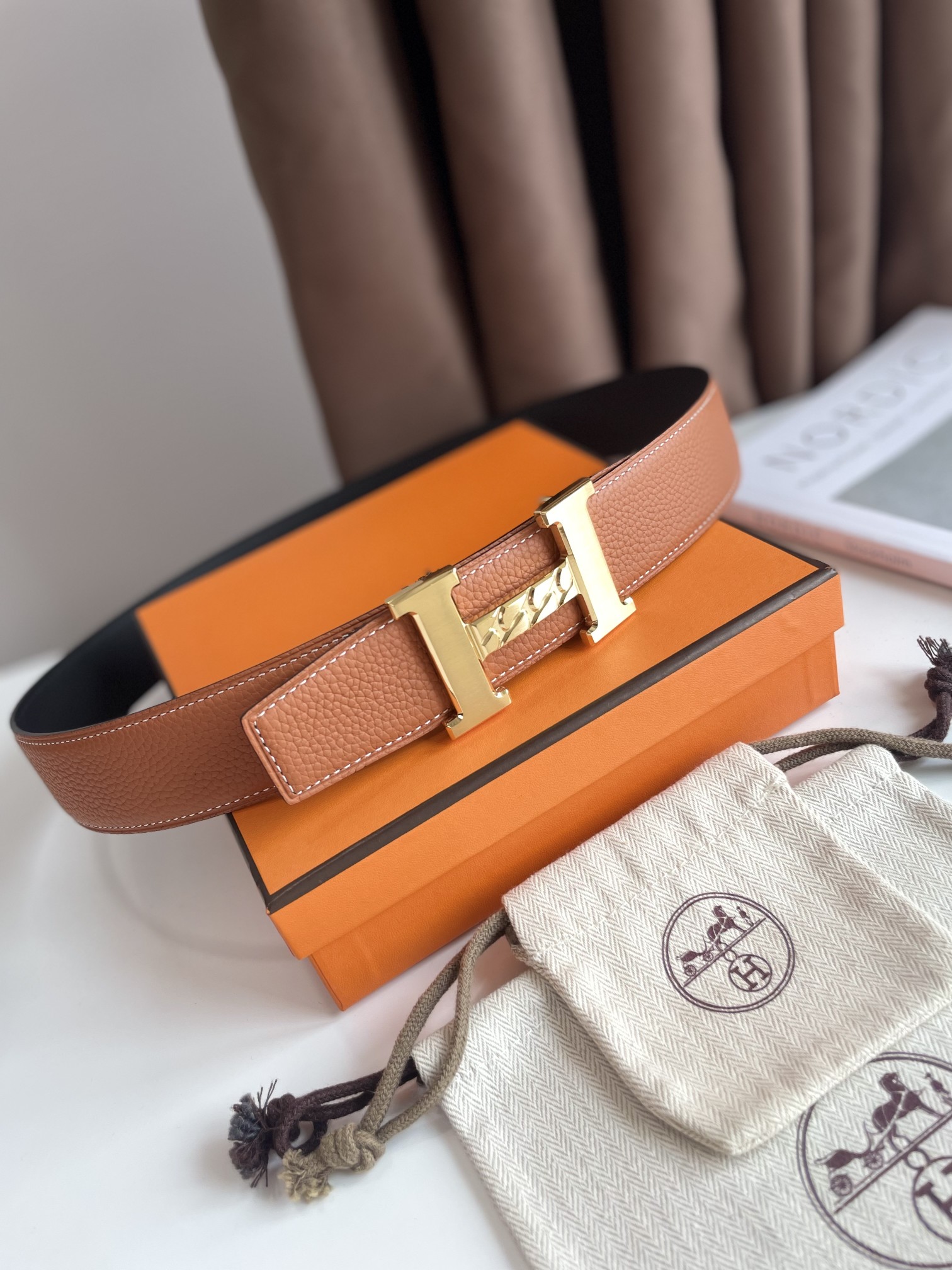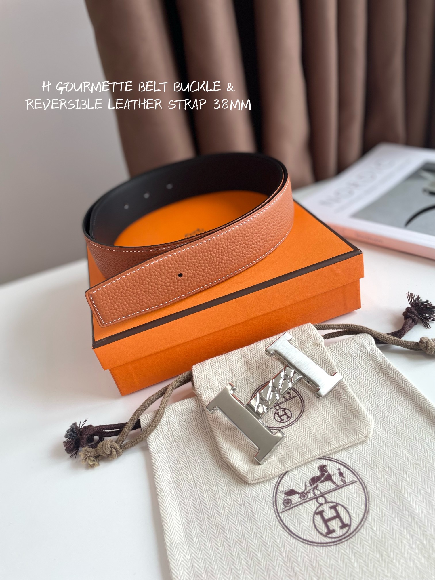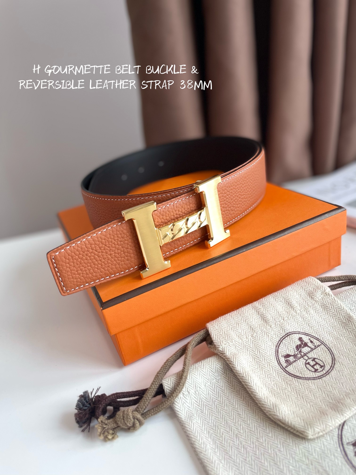 Hermes-H GOURMETTE BELT BUCKLE & REVERSIBLE LEATHER STRAP 38MM