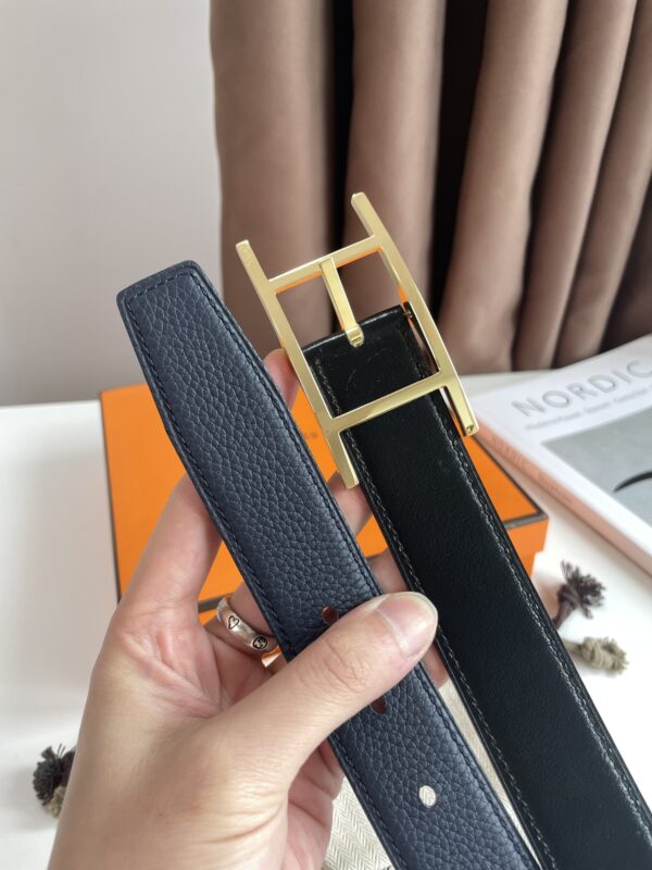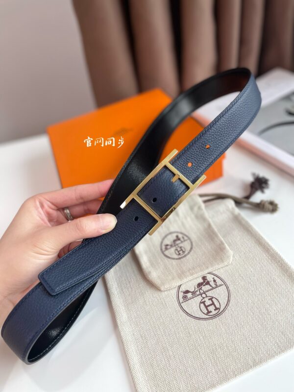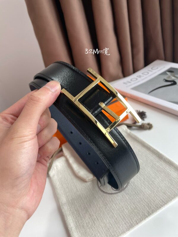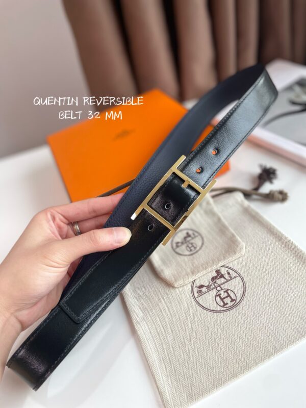 Hermes-QUENTIN REVERSIBLE BELT with palladium-plated metal buckle, width 32MM, rotating hardware can be used on both sides