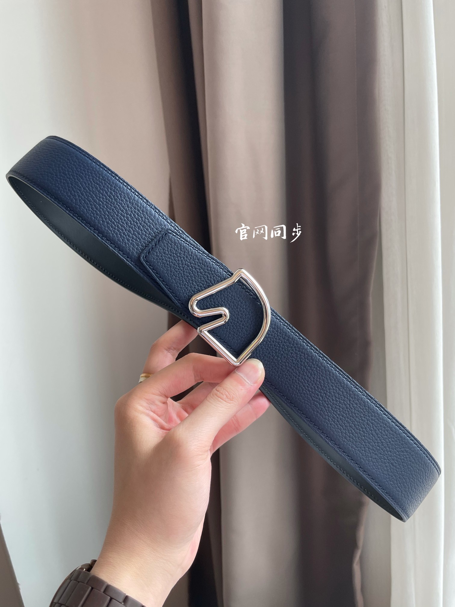 HERMES-BOUCLE DE CEINTURE TETE DE CHEVAL & CUIR DE CEINTURE REVERSIBLE 38MM