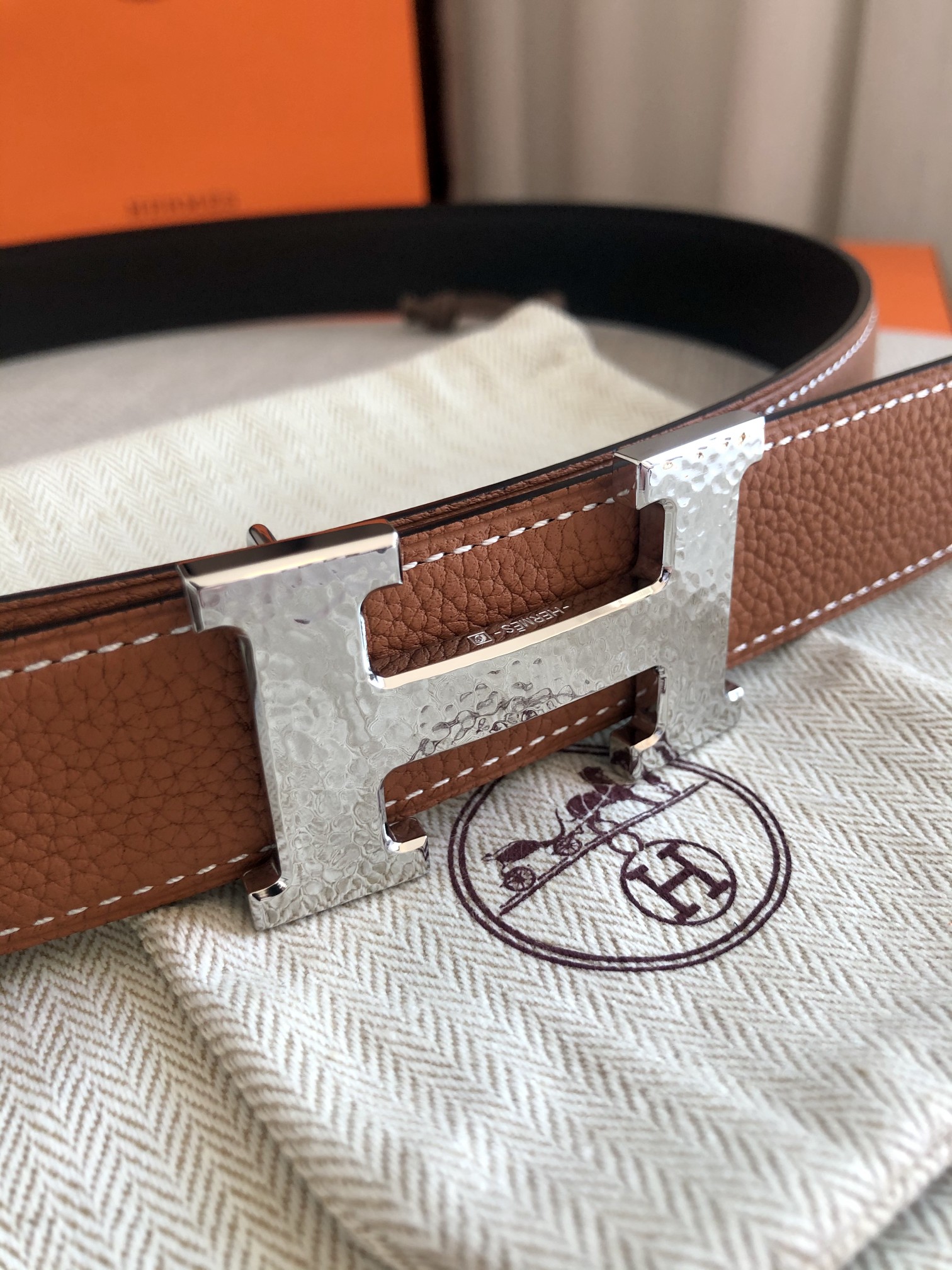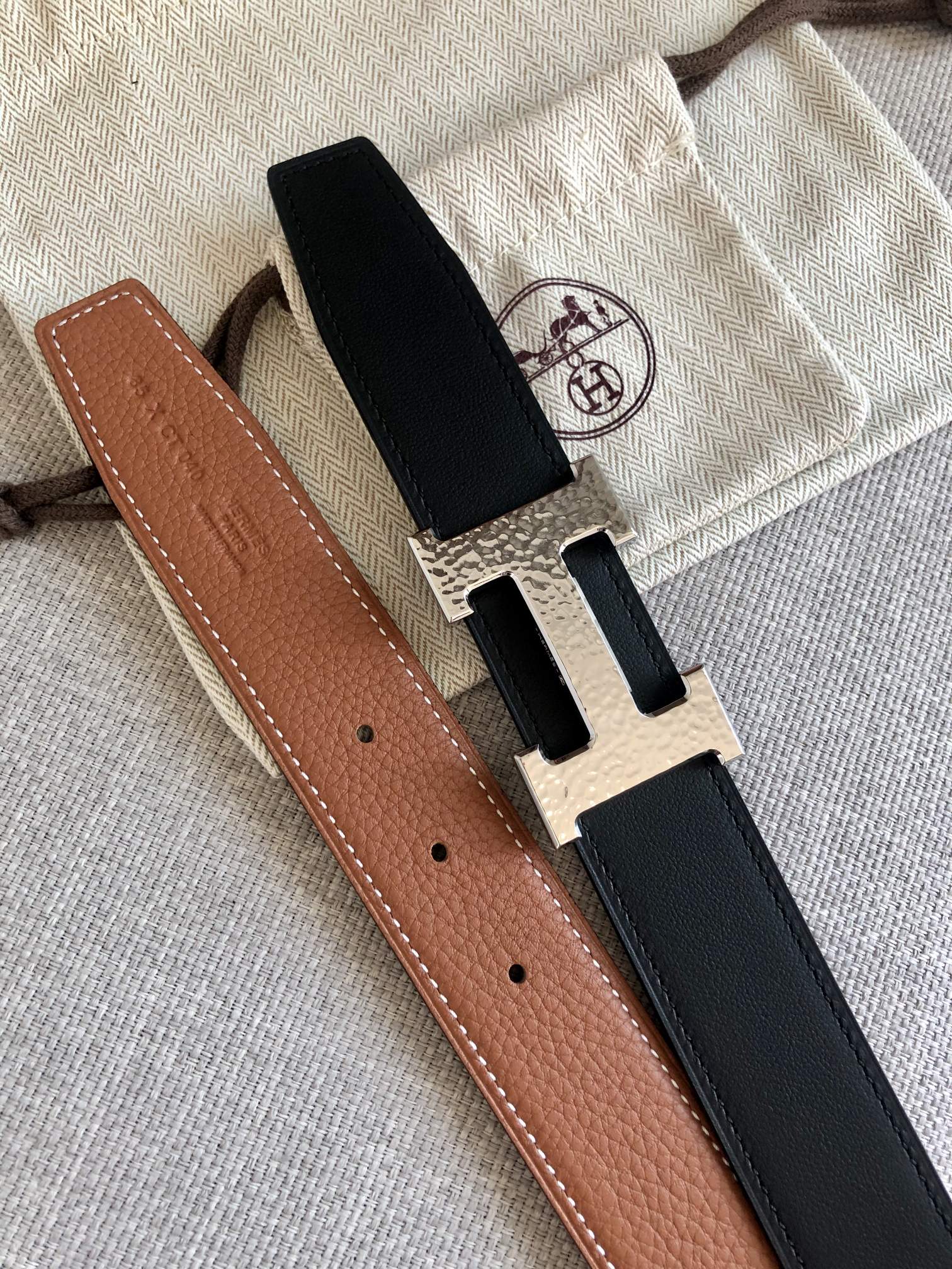 Official website synchronization-hermes-H MARTELEE BELT BUCKLE & double-sided leather belt 32MM palladium-plated boutique metal belt buckle togo calfskin double-sided belt 35082007