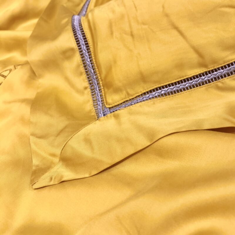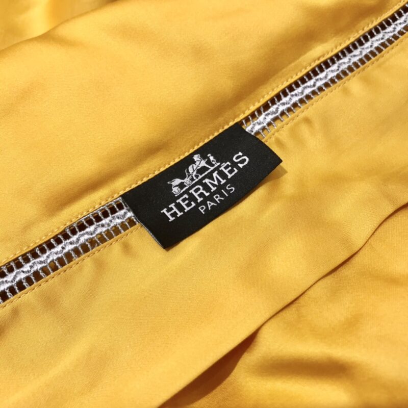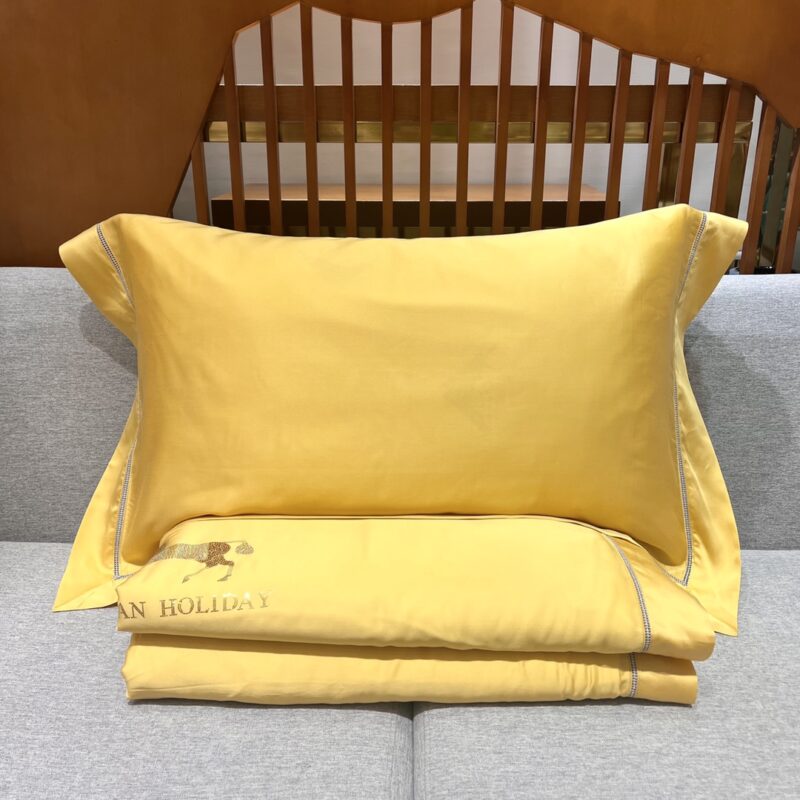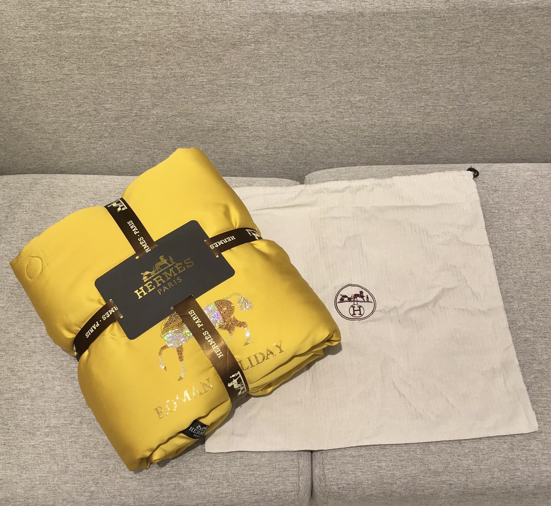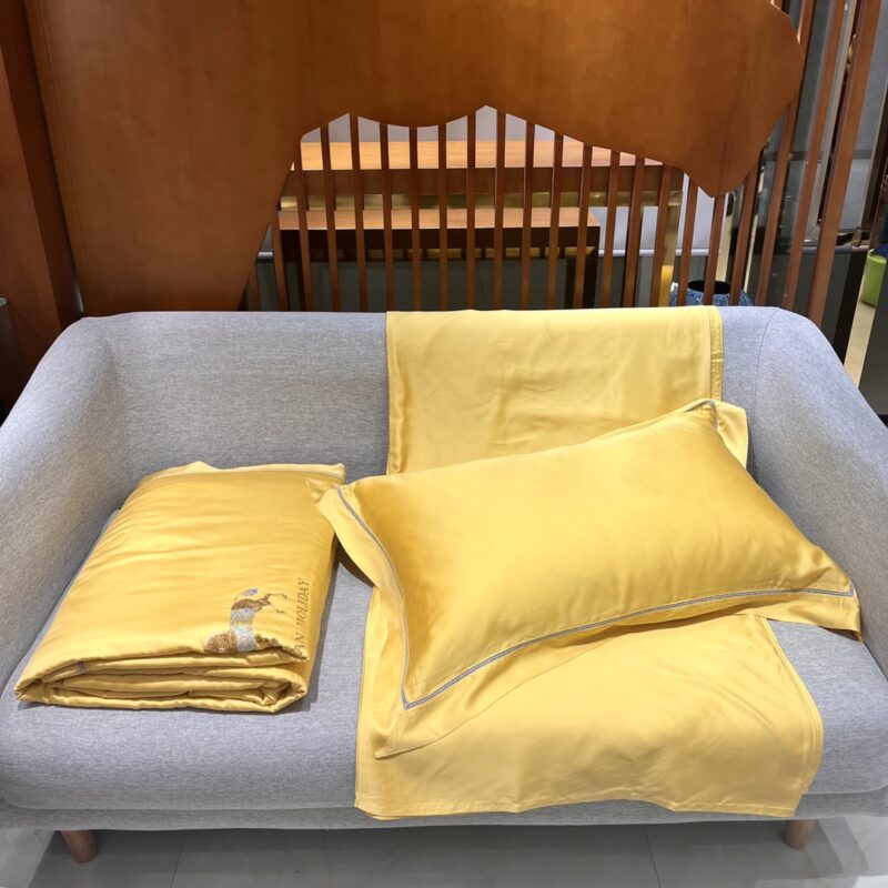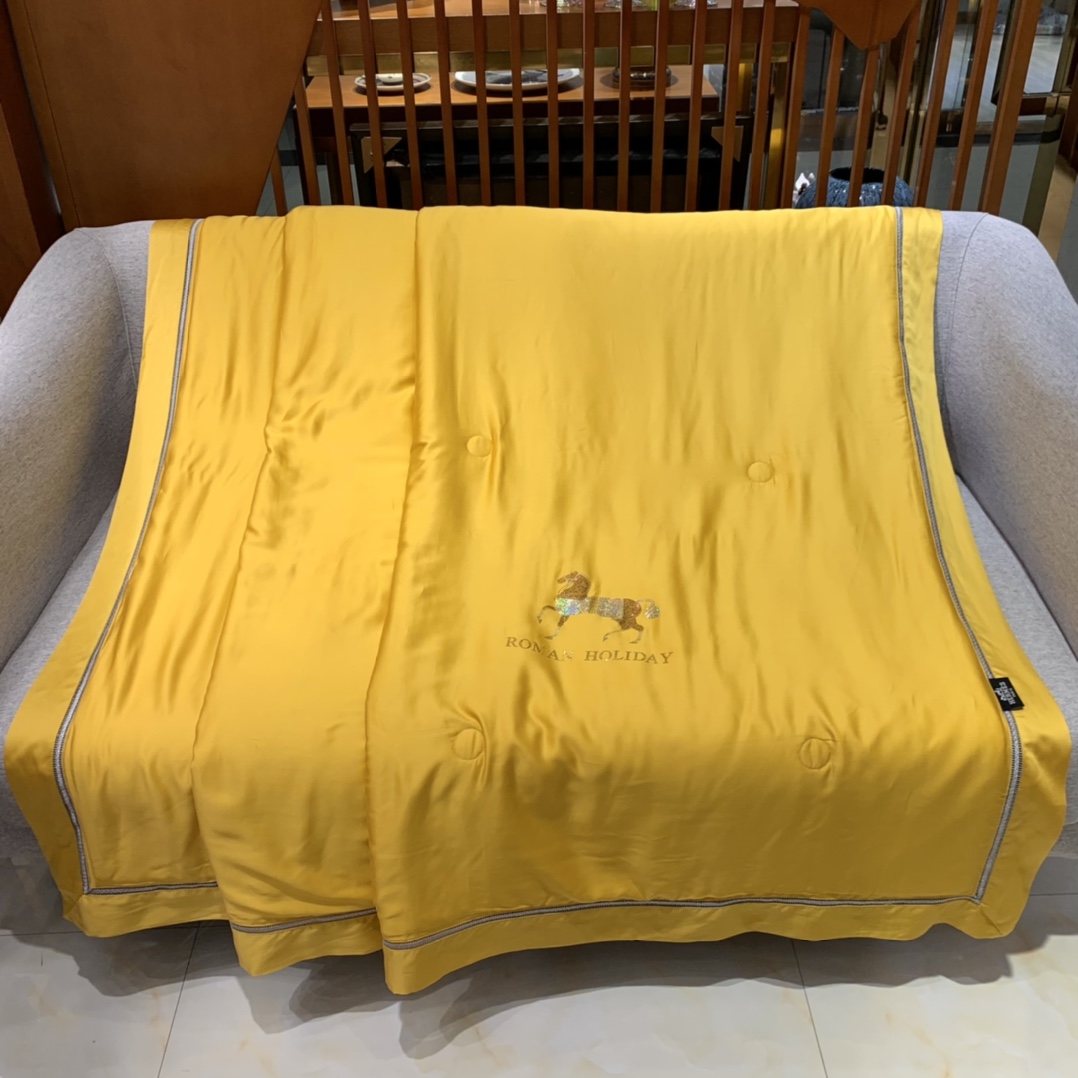 Hermes Lyocell Tencel air conditioner quilt -Lemon yellow- Fabric: 100% Lyocell Tencel. Softer than silk, better moisture absorption than cotton, machine washable directly. Filling: 80% feather velvet + 20% mulberry silk, the silk is long and delicate, and it feels warm to the touch. Weight: filling 500g total weight 1800g. Craftsmanship: Swarovski microcrystalline diamond Malaysia hot-drilled logo, smooth and neat, perfect embellishment. Exquisite hollowing process of gold and silver threads. Washing: machine wash, not drying, not exposure Size: Large 220*240cm Standard 200*230cm With four-piece suit