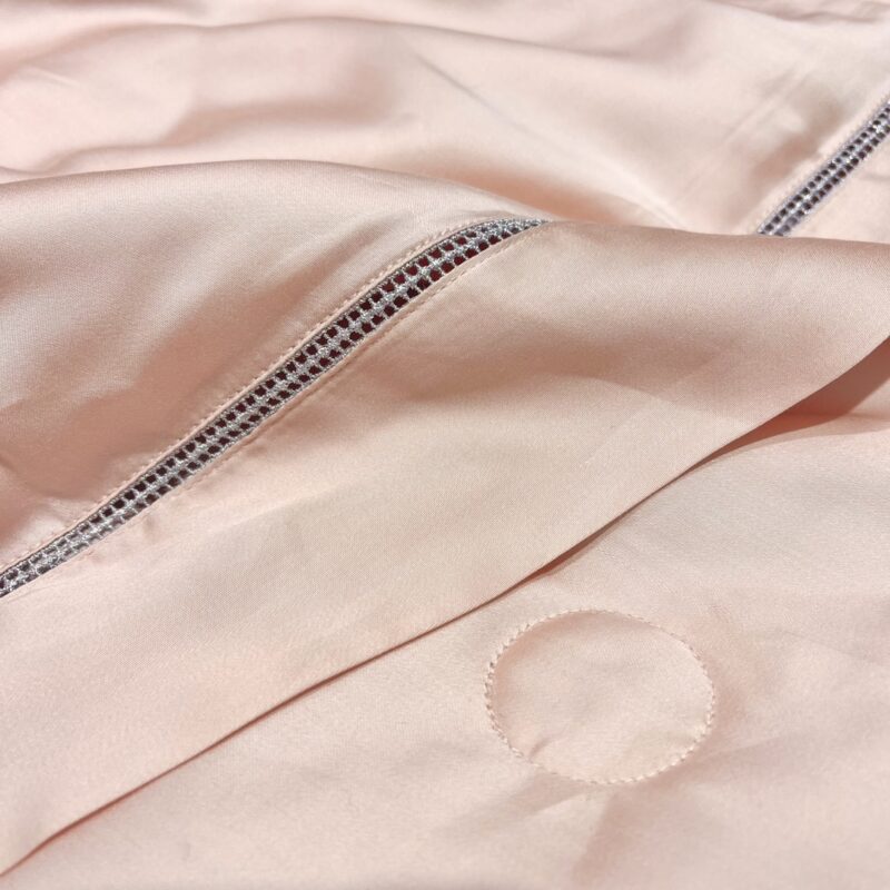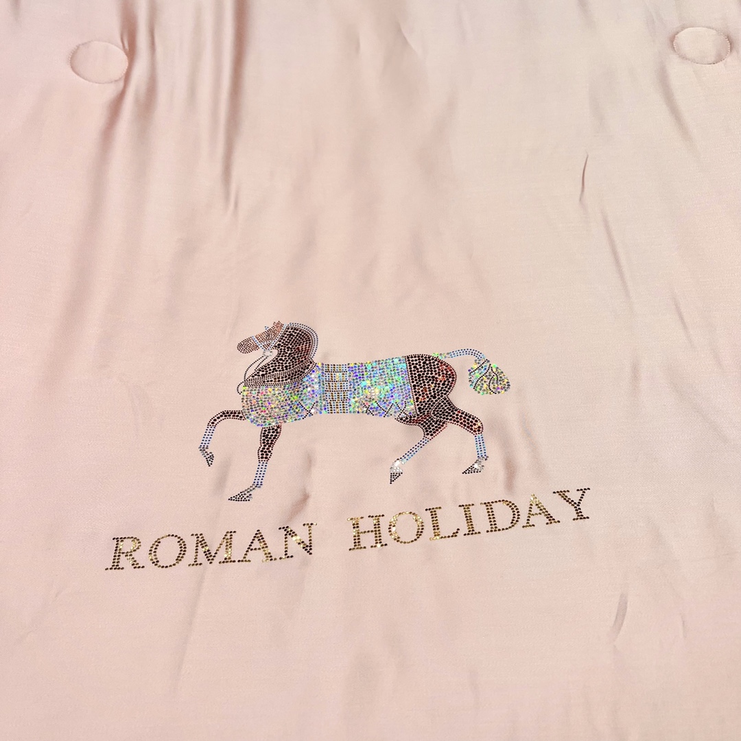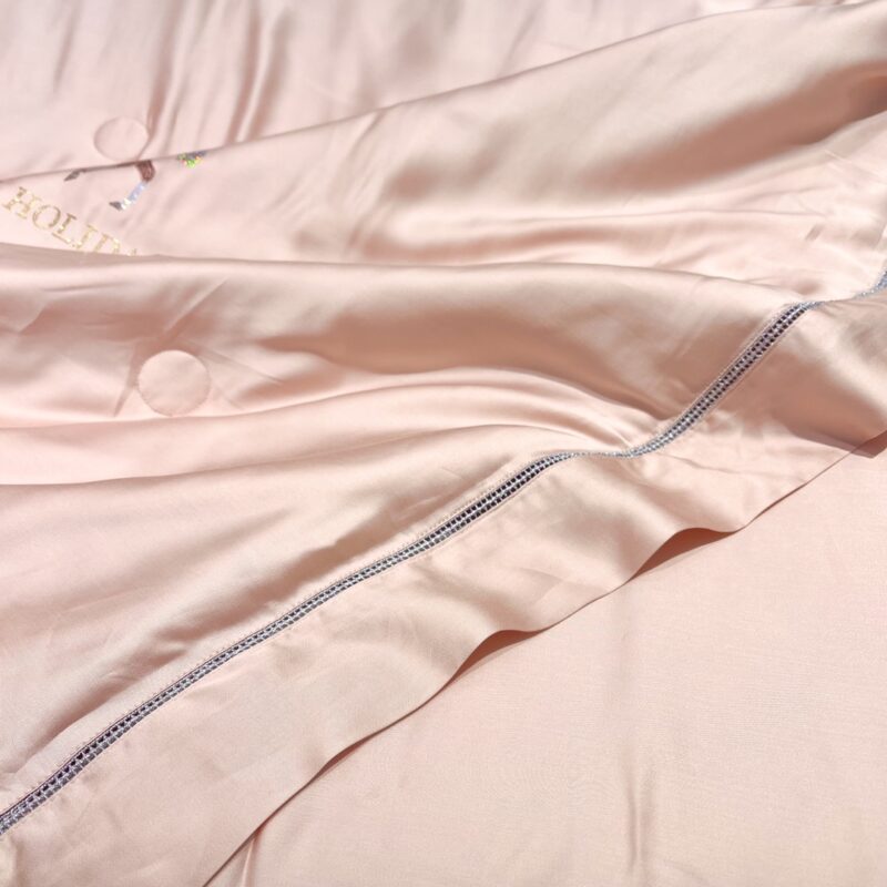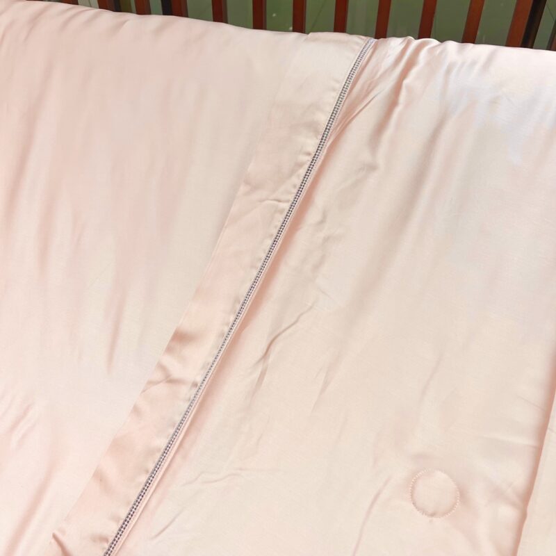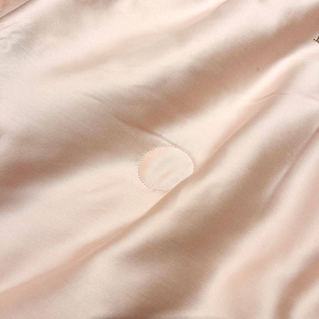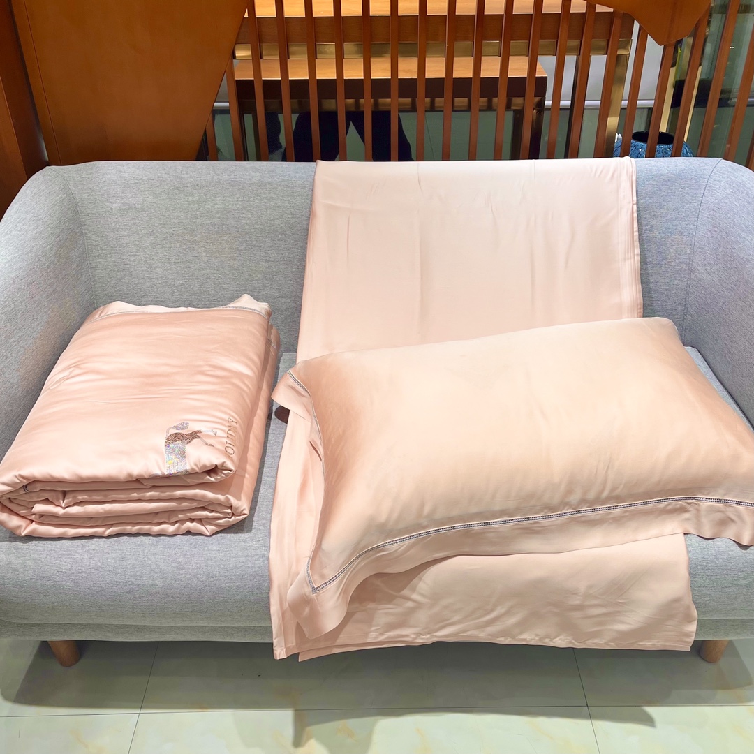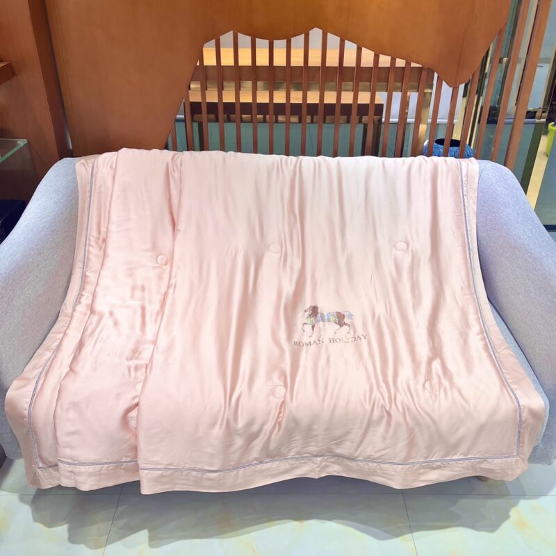 Hermes Lyocell Tencel air conditioner quilt Sakura Pink Fabric: 100% Lyocell Tencel. Softer than silk, better moisture absorption than cotton, machine washable directly. Filling: 80% feather velvet + 20% mulberry silk, the silk is long and delicate, and it feels warm to the touch. Weight: filling 500g total weight 1800g. Craftsmanship: Swarovski microcrystalline diamond Malaysia hot-drilled logo, smooth and neat, perfect embellishment. Exquisite hollowing process of gold and silver threads. Washing: machine wash, not drying, not exposure Size: Large 220*240cm Standard 200*230cm With four-piece suit