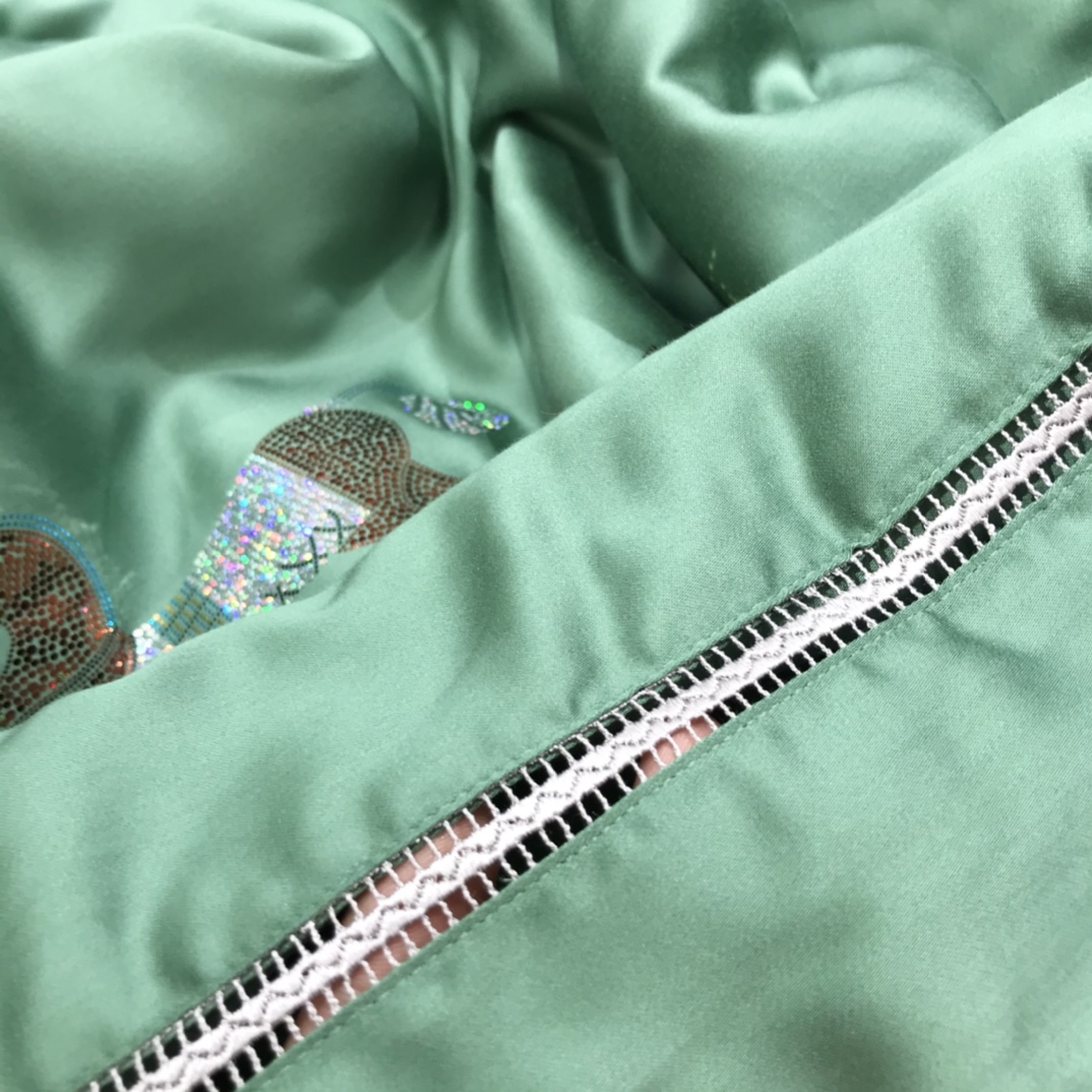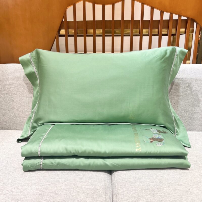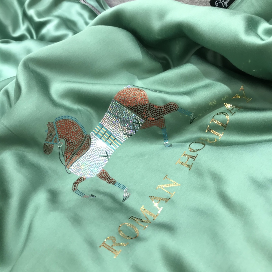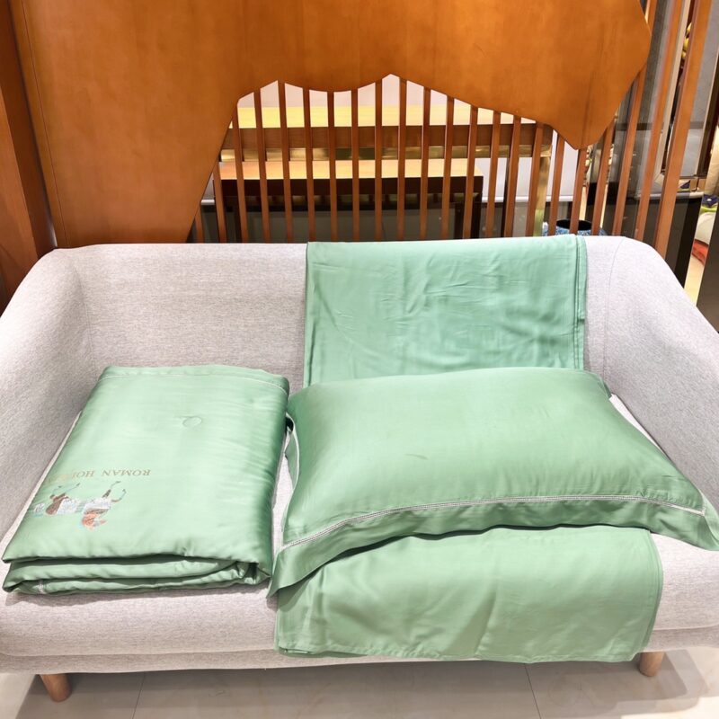 Hermes new Tencel air conditioner quilt -Mint Green- Fabric: 100% Lyocell Tencel! Softer than silk, better moisture absorption than cotton, machine washable directly. Filling: 80% feather velvet + 20% mulberry silk, the silk is long and delicate, and it feels warm to the touch. Weight: filling 500g total weight 1800g. Craftsmanship: Exquisite Malaysian hot diamond logo, smooth and neat, perfect embellishment. Exquisite hollow work.