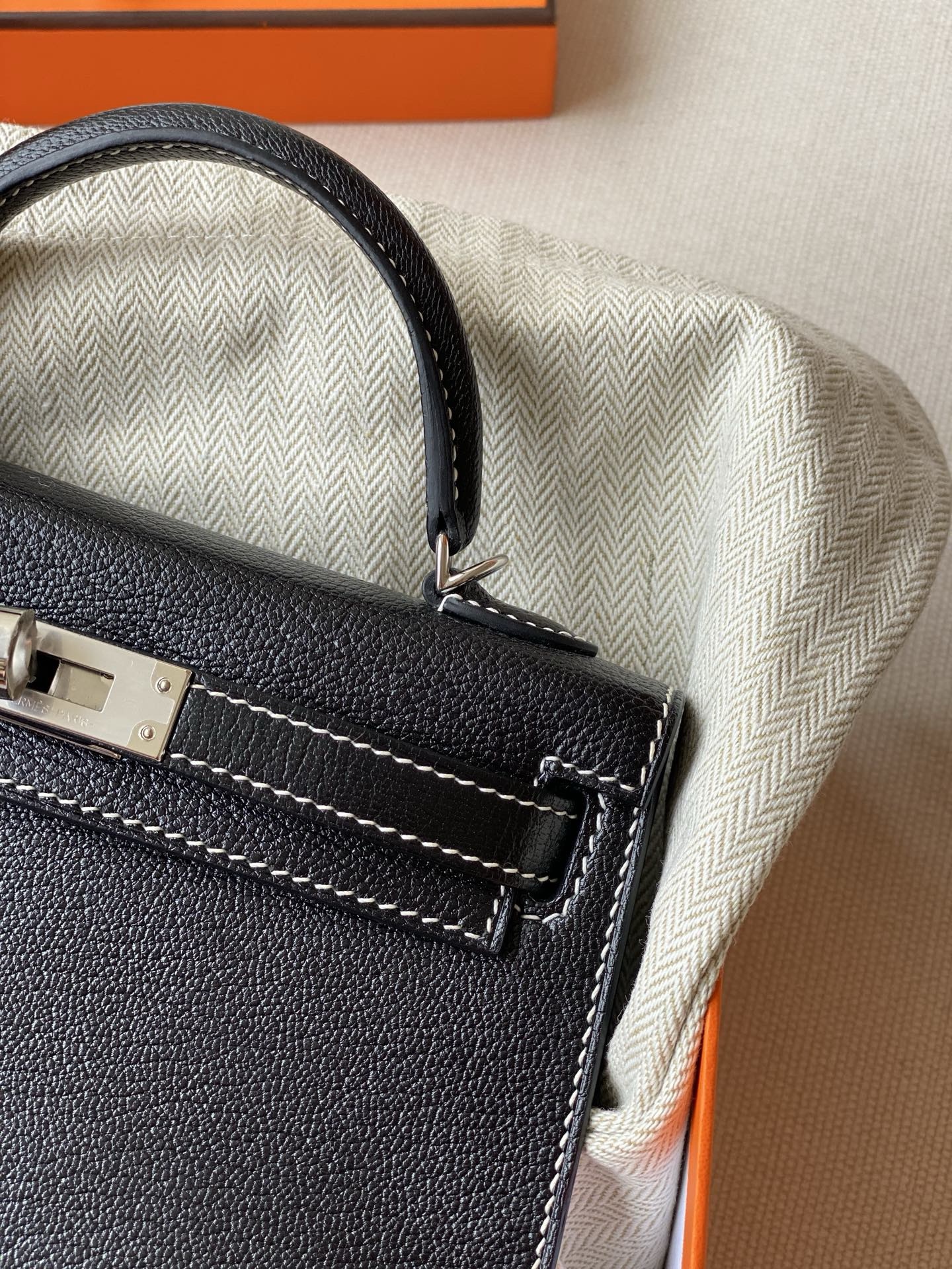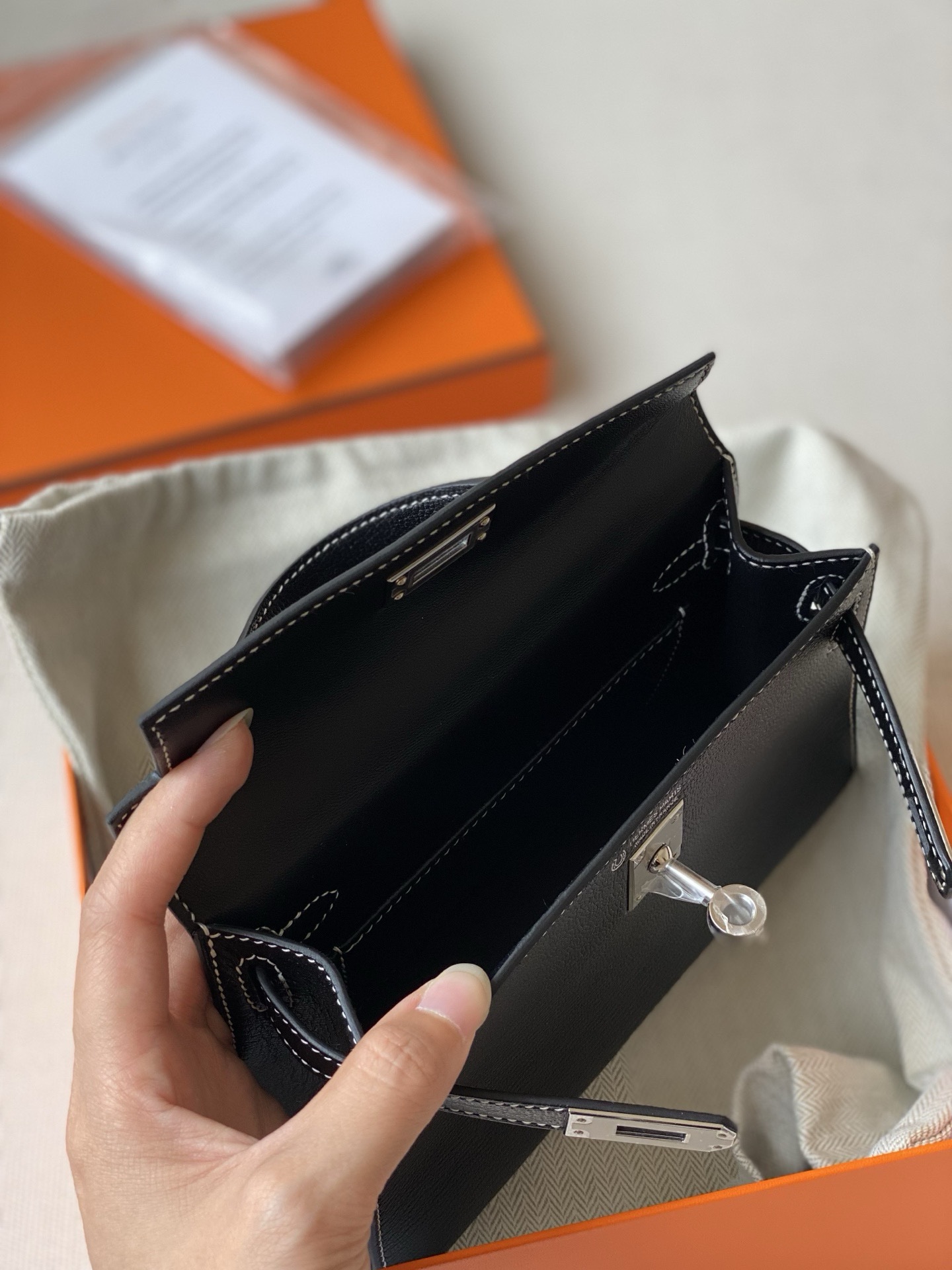 Hermes mini Kelly black color chevre leather special order bag 2026 authentic quality
