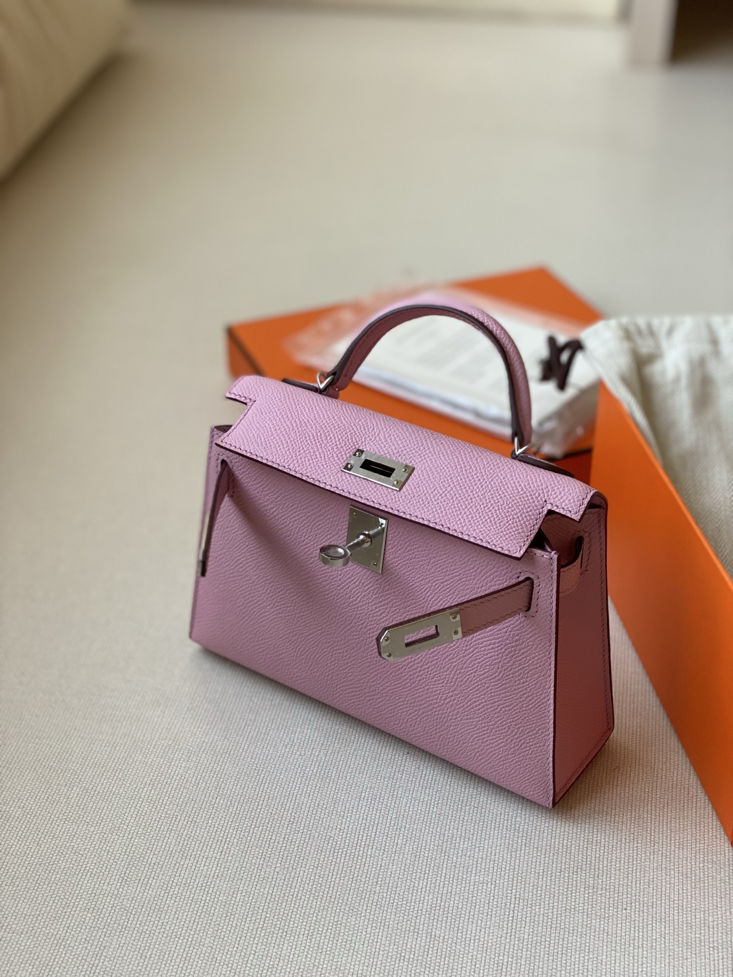 / Hermes mini Kelly epsom leather phw mauve sylvestre authentic quality 2026