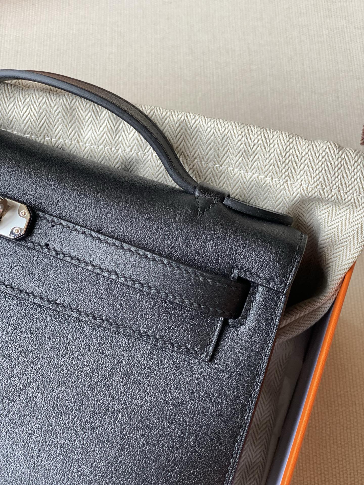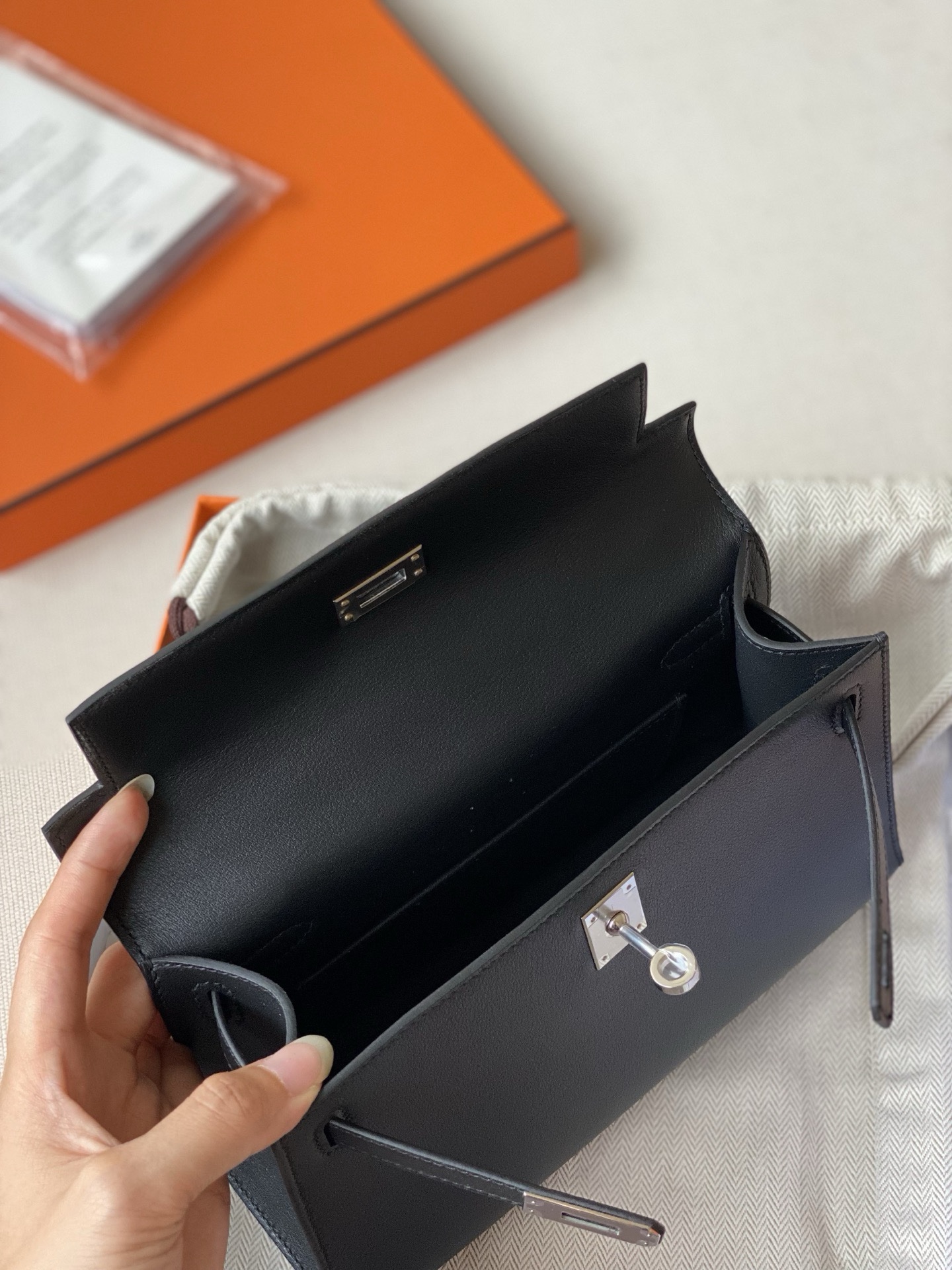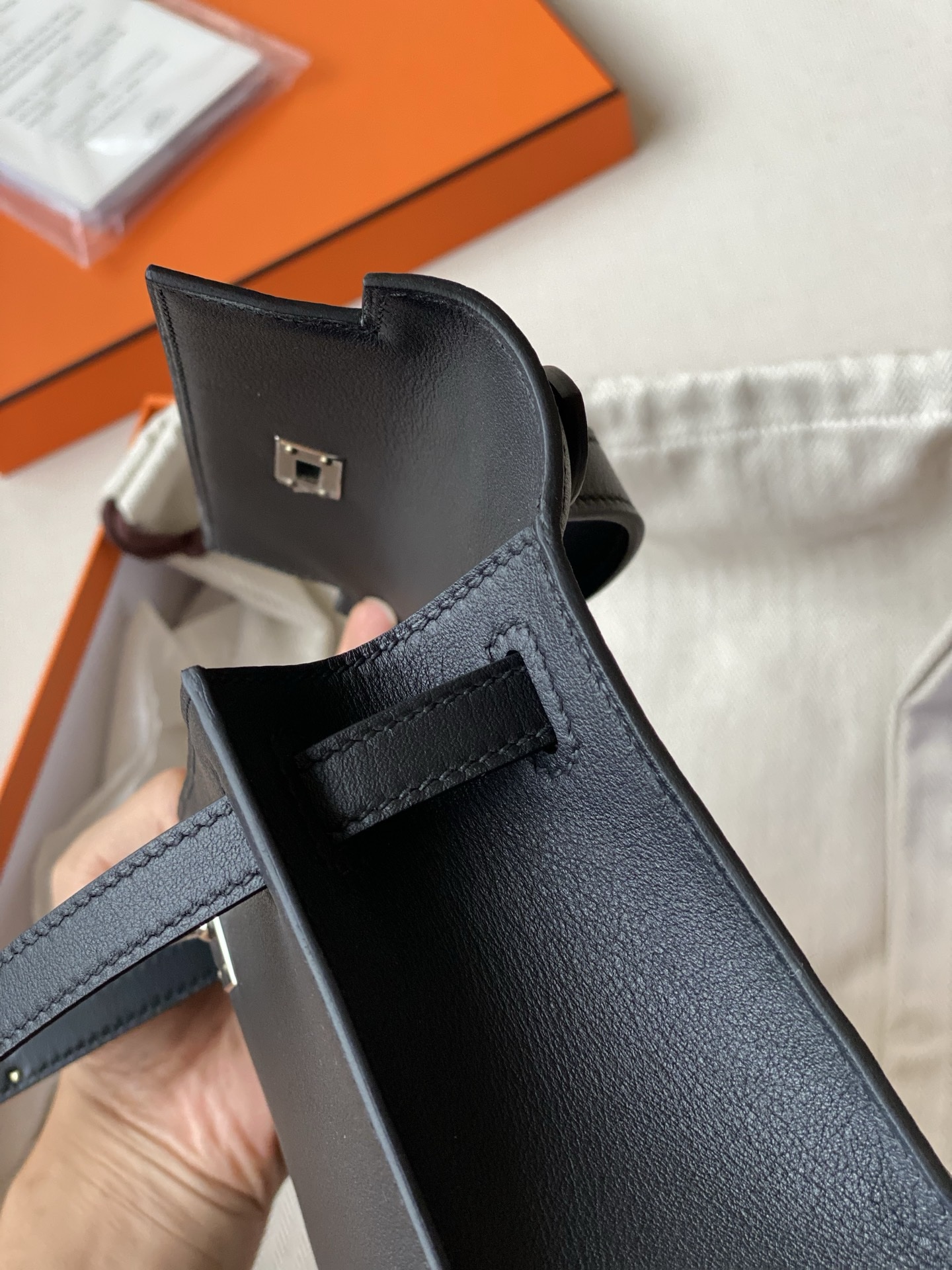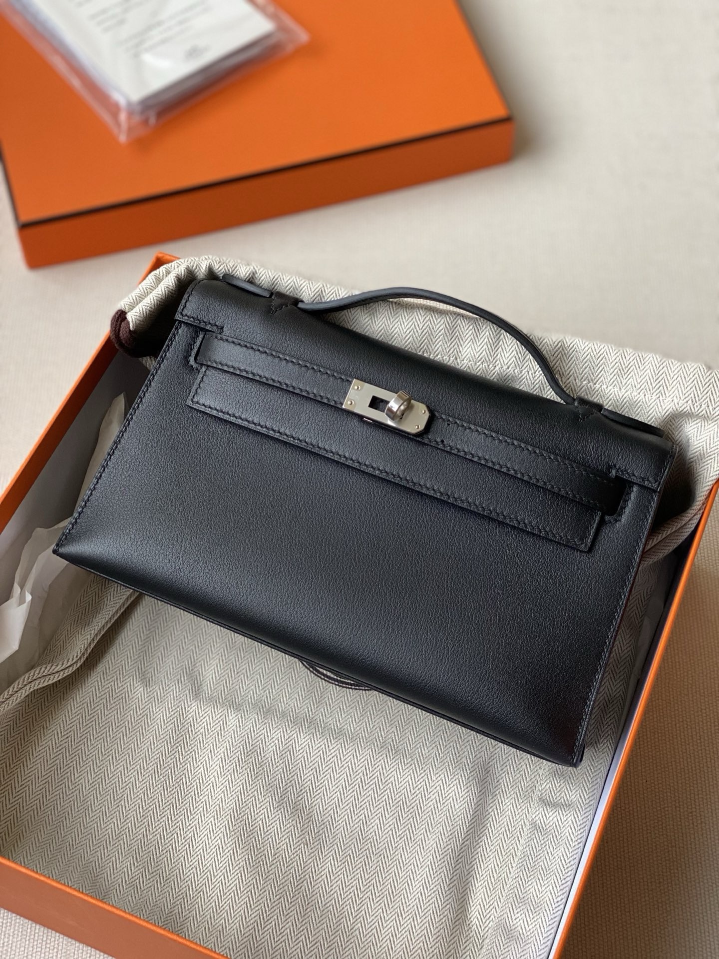 / Hermes kelly Pochette swift leather phw bag black fully handmade 2026 authentic quality
