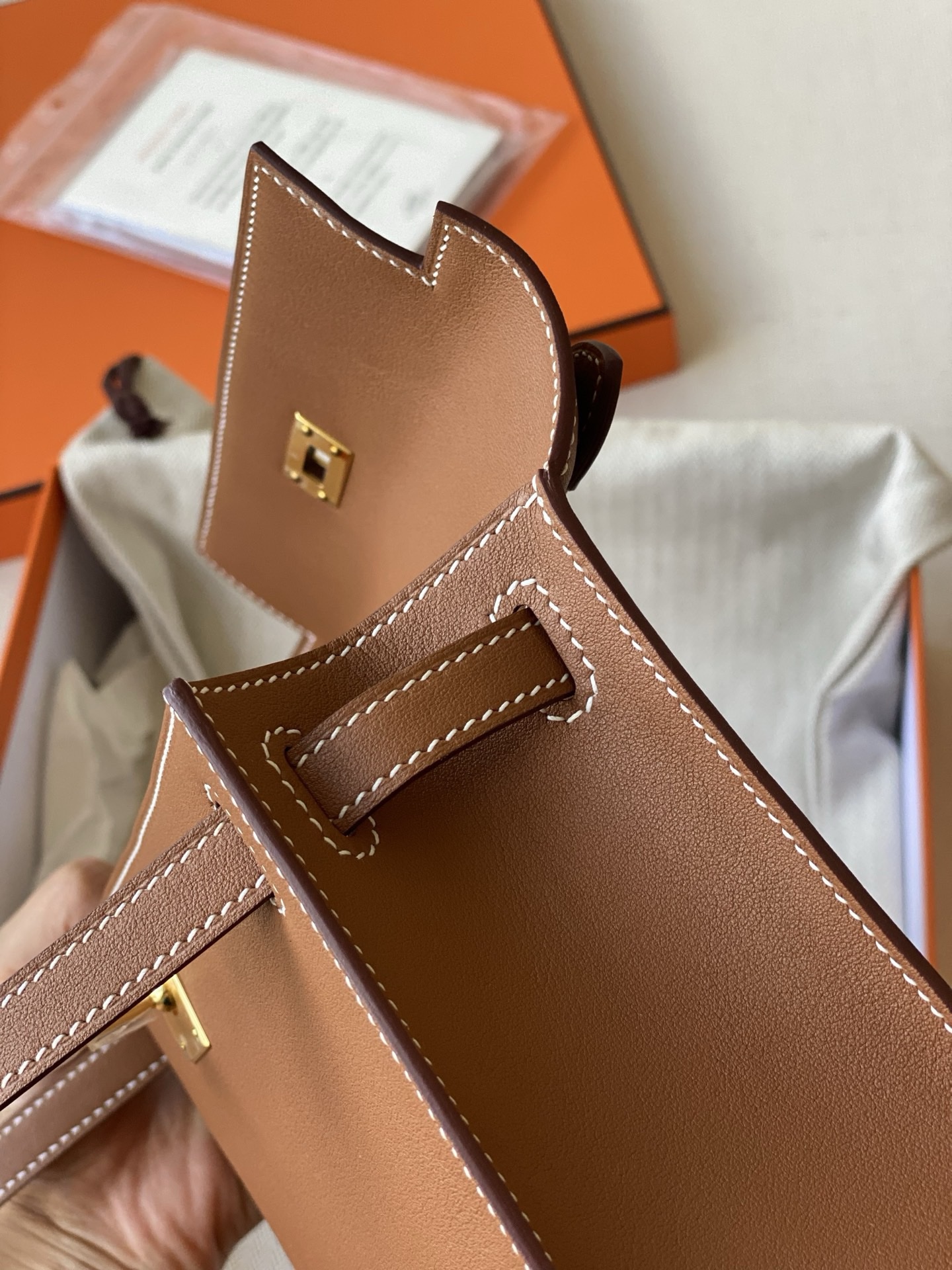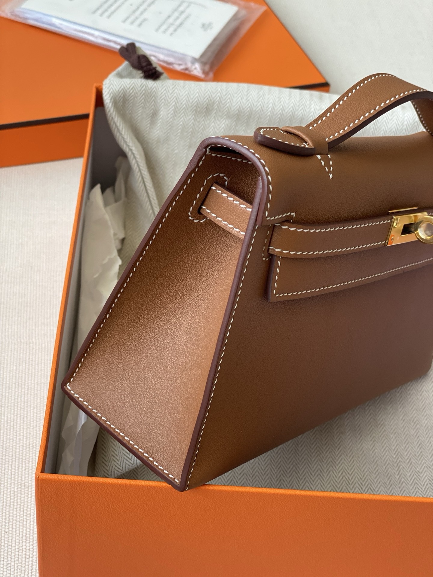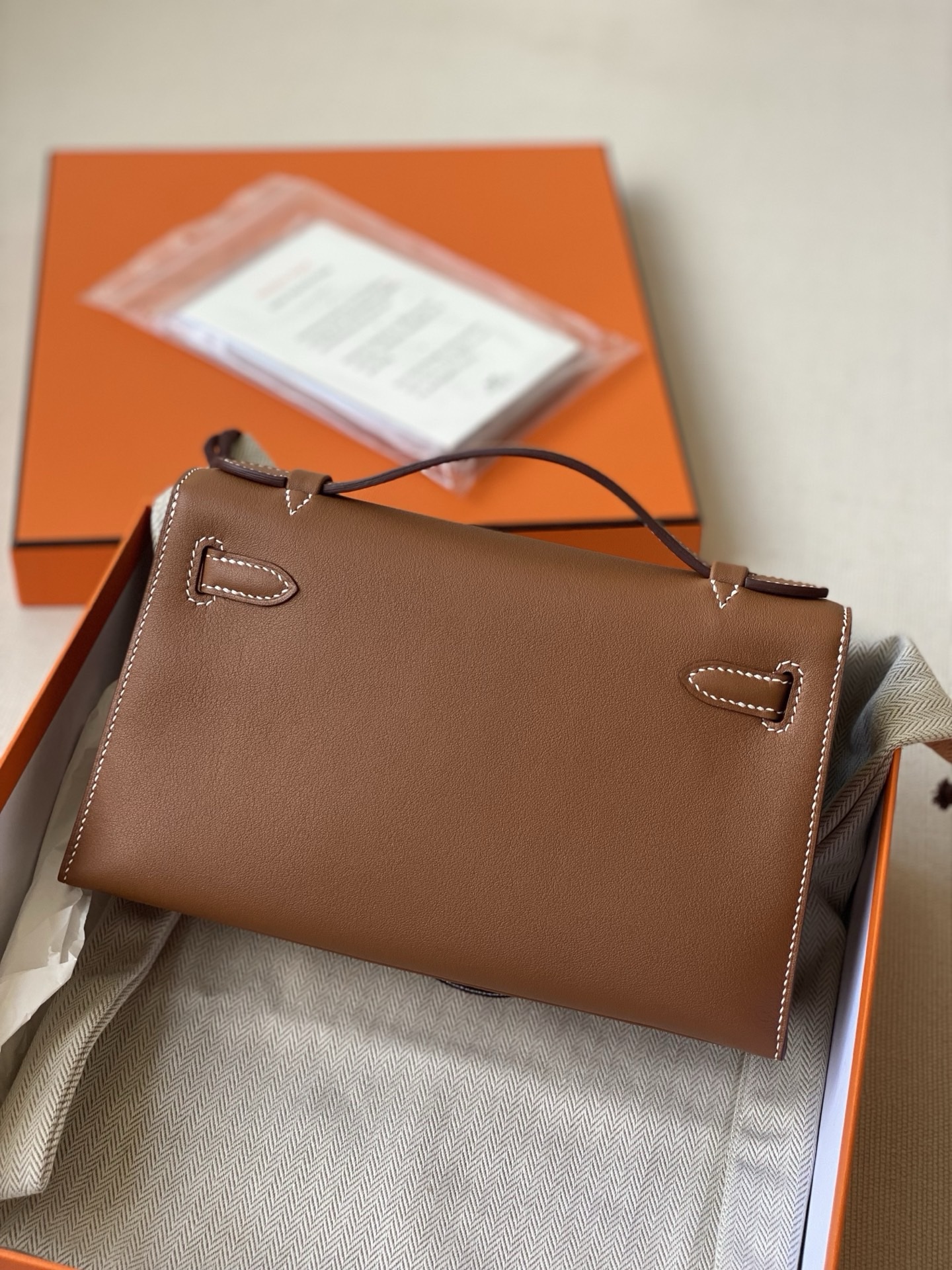 Hermes kelly Pochette swift leather ghw bag golden brown fully handmade 2026 authentic quality