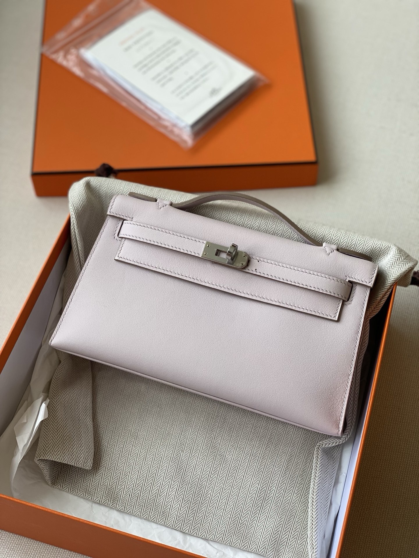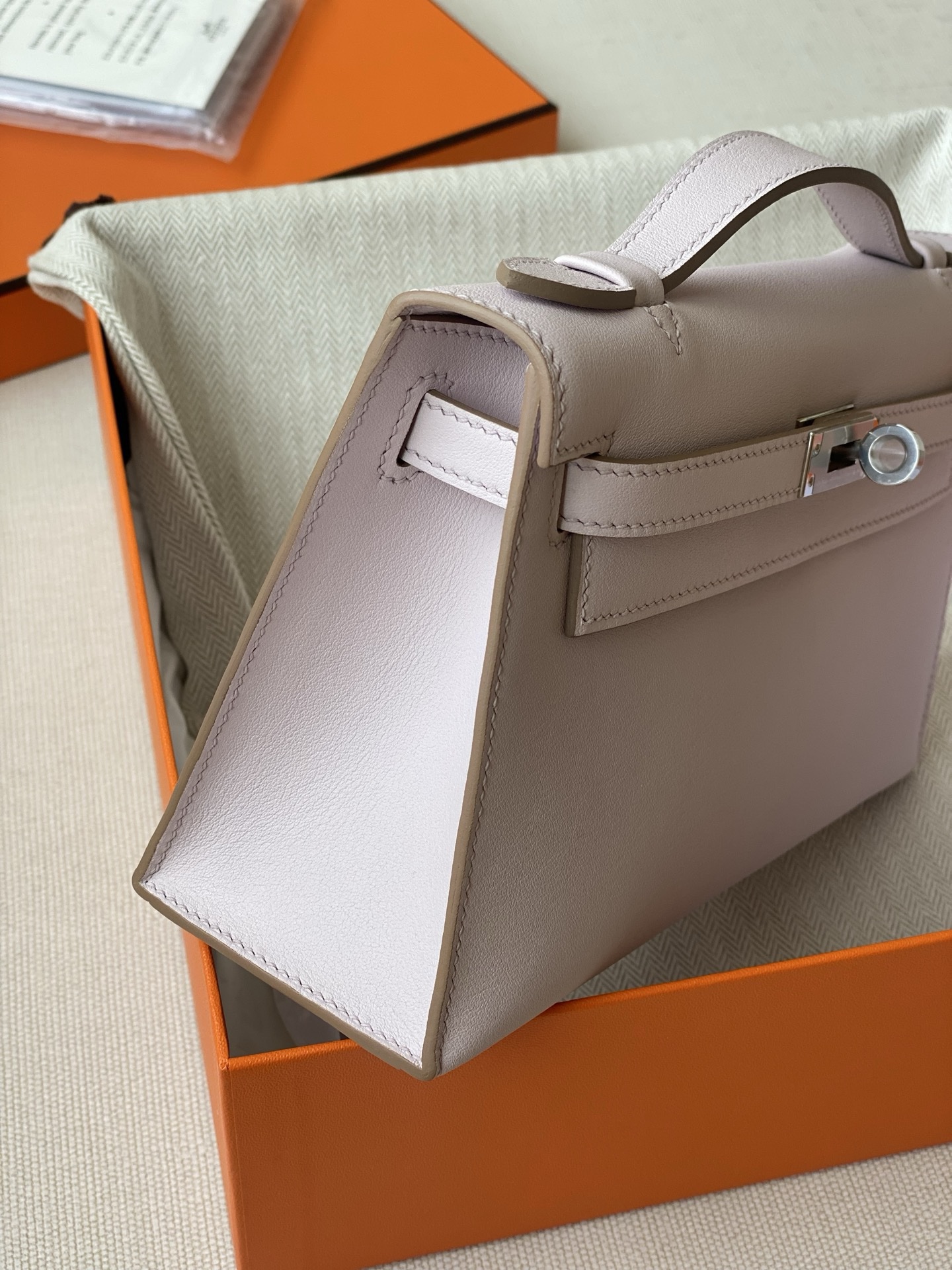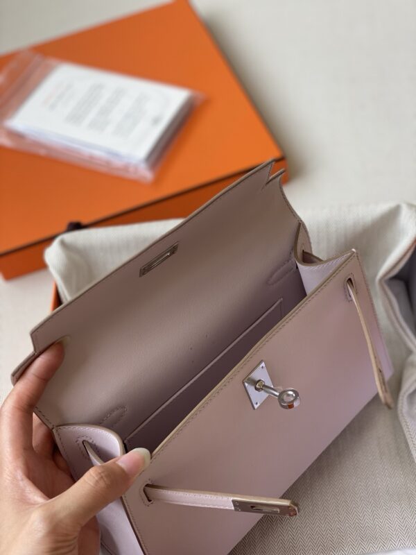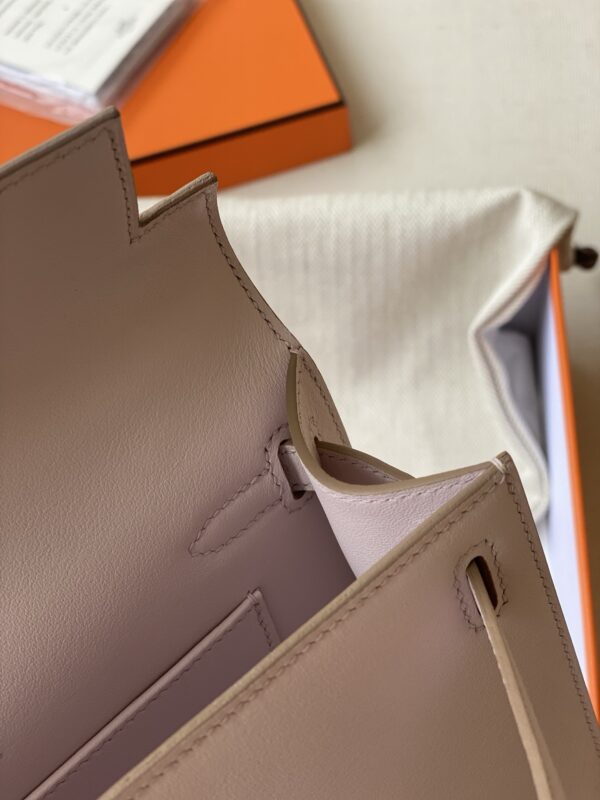 / Hermes kelly Pochette swift leather ohw bag mauve pale fully handmade 2026 authentic quality
