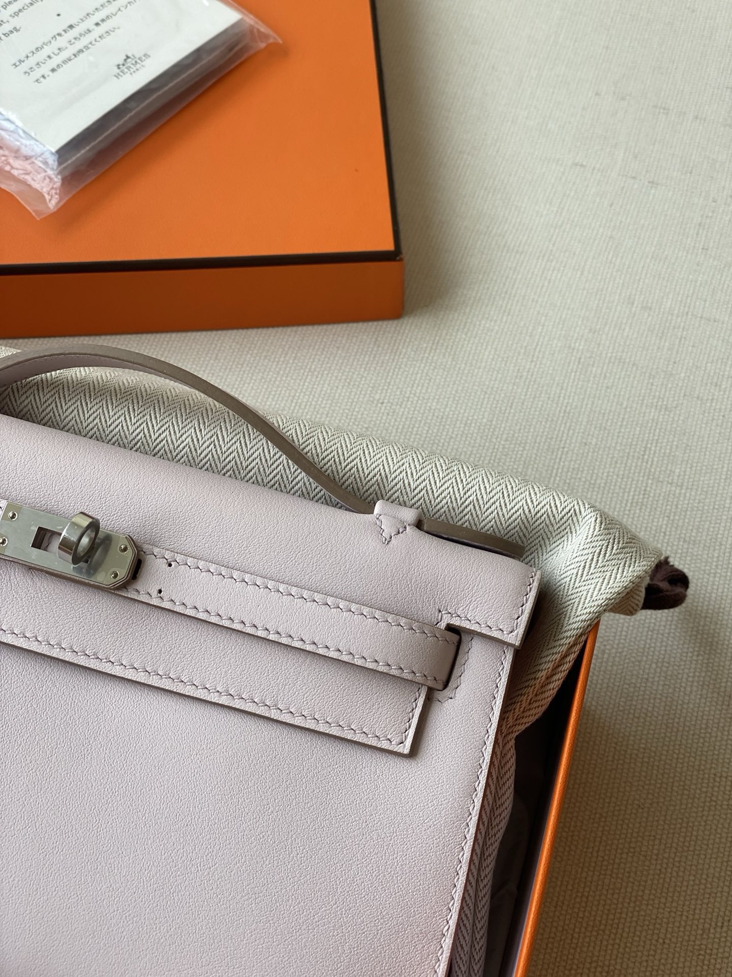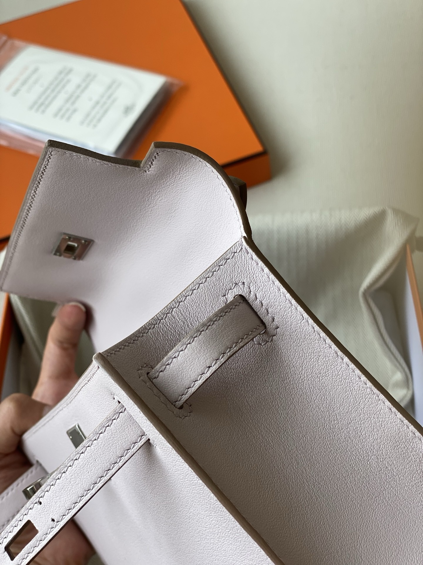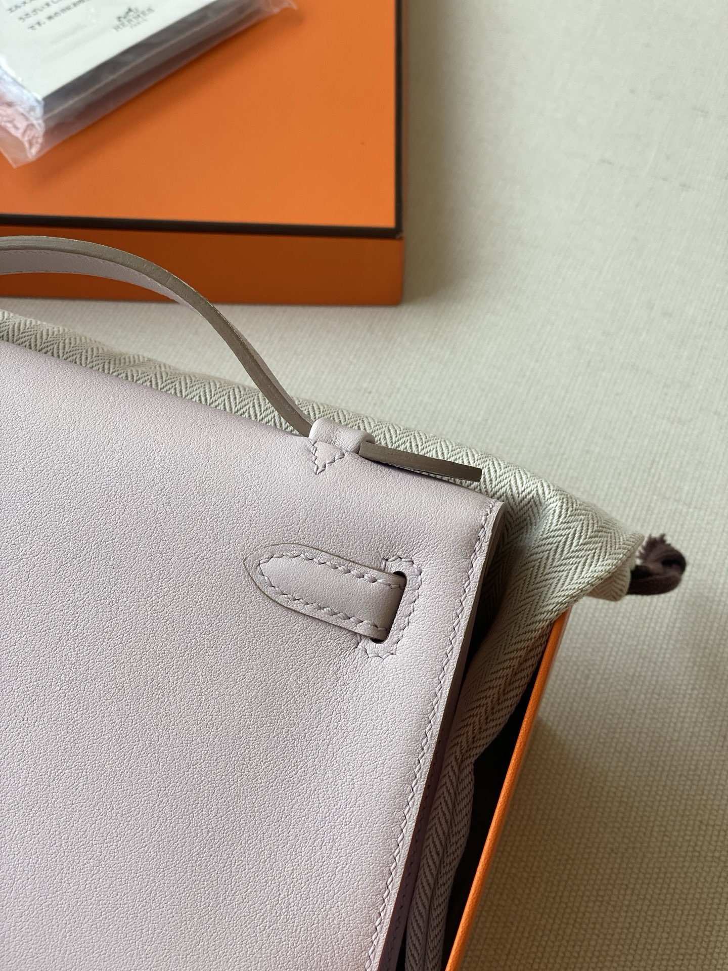 / Hermes kelly Pochette swift leather ohw bag mauve pale fully handmade 2026 authentic quality