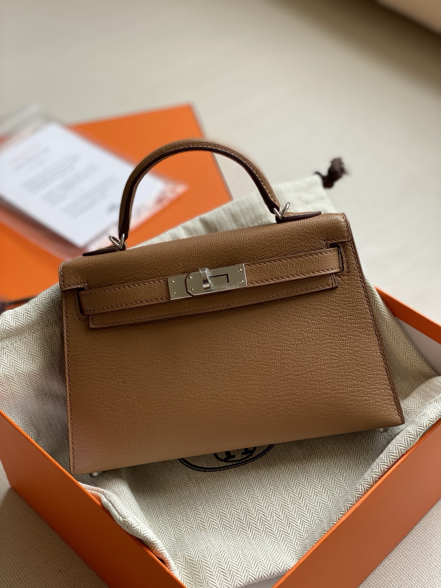 Hermes mini Kelly epsom leather phw golden brown authentic quality 2026