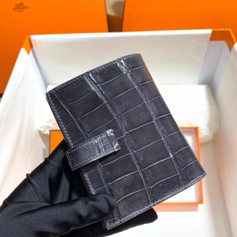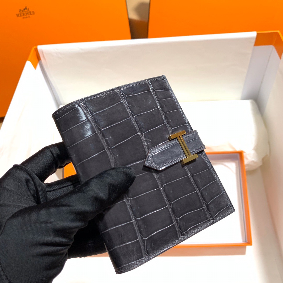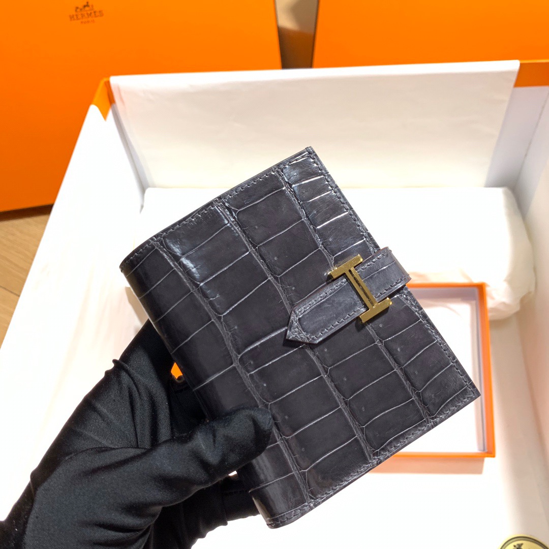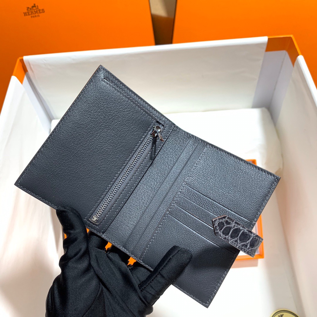 Hermes Bearn Compact Wallet Graphite in Crocodile