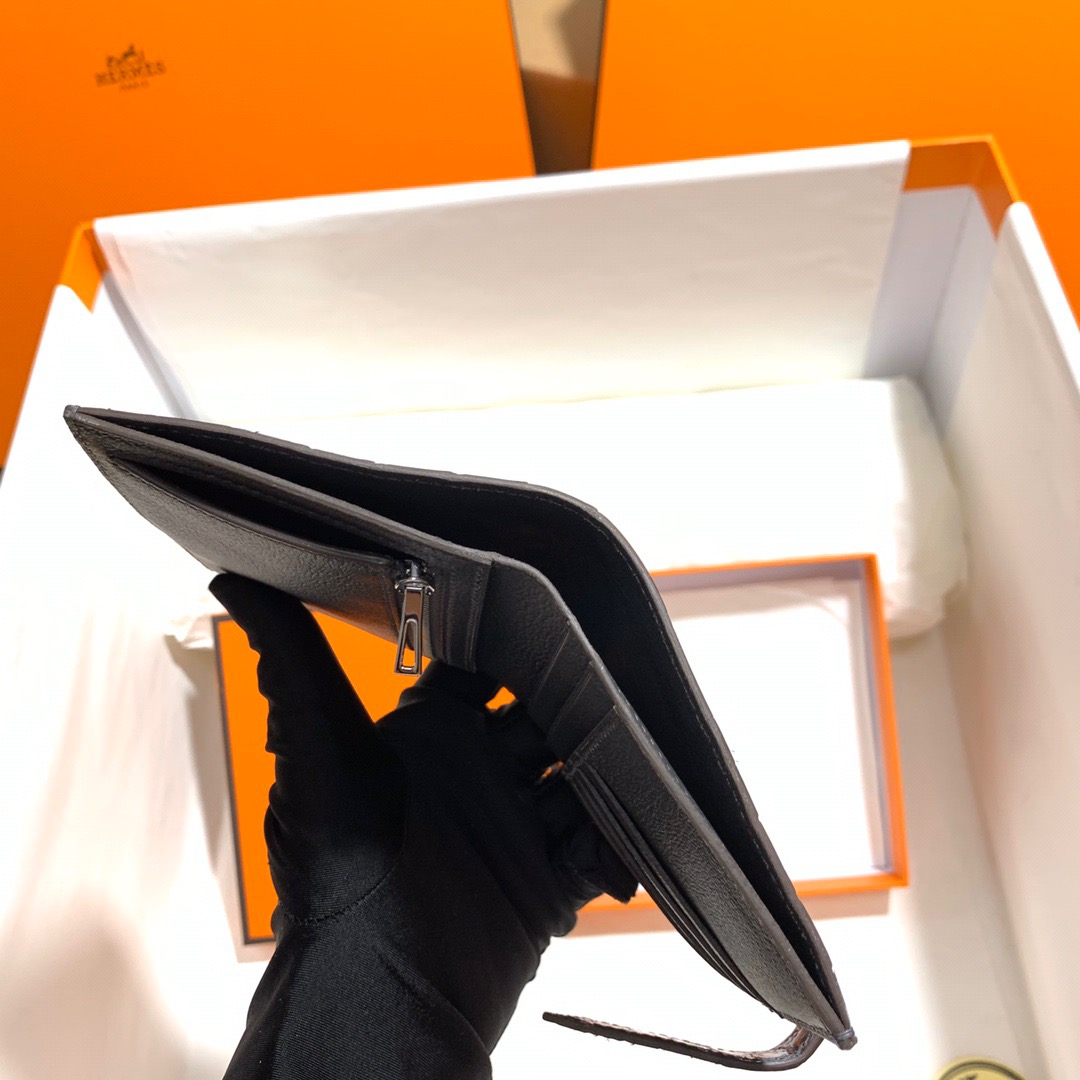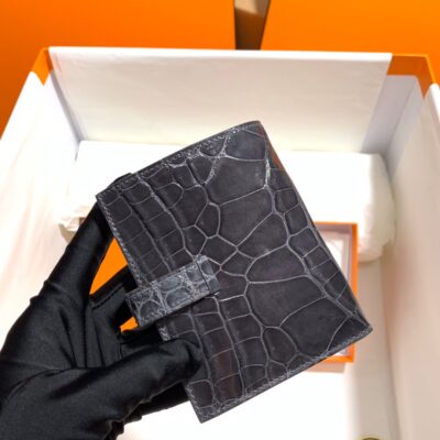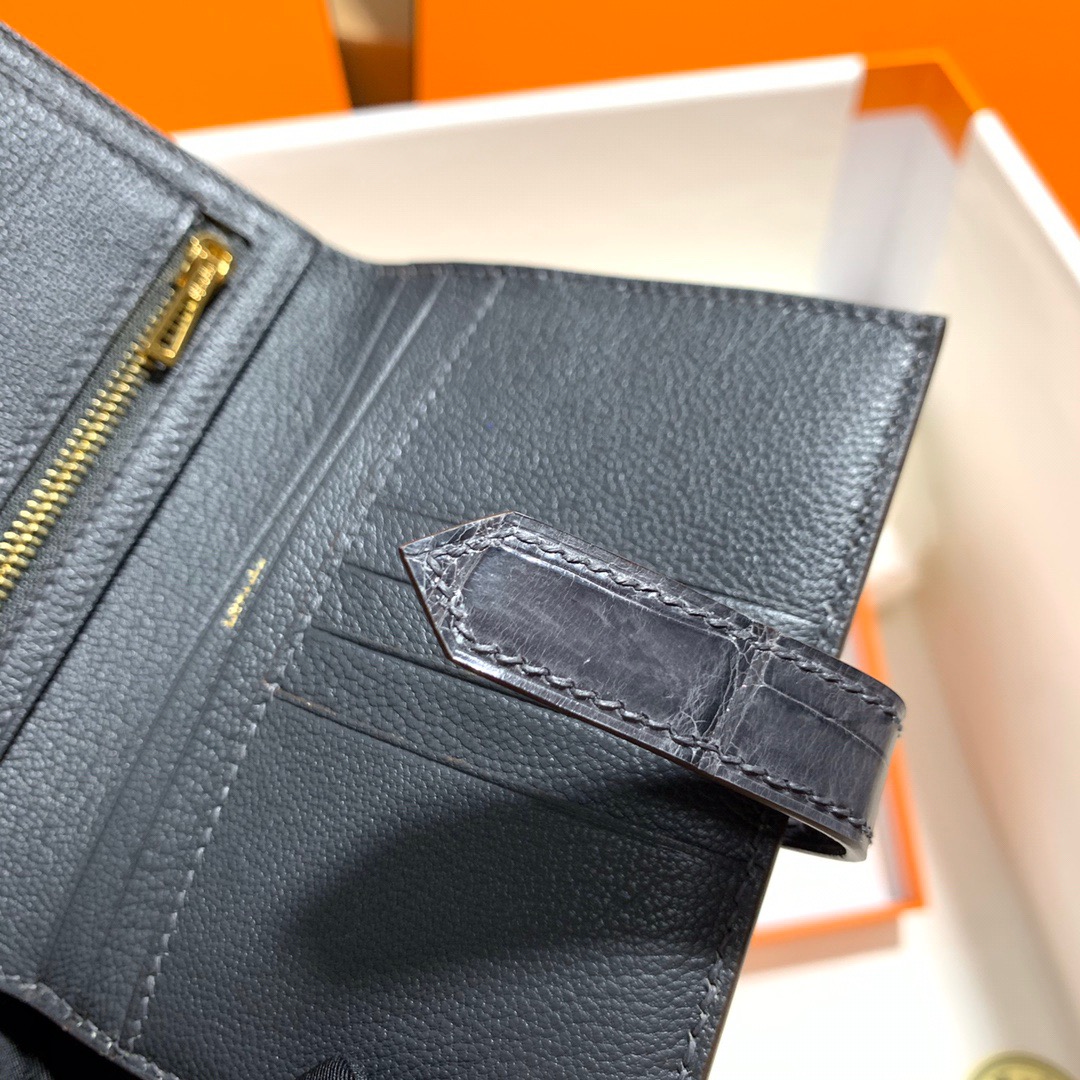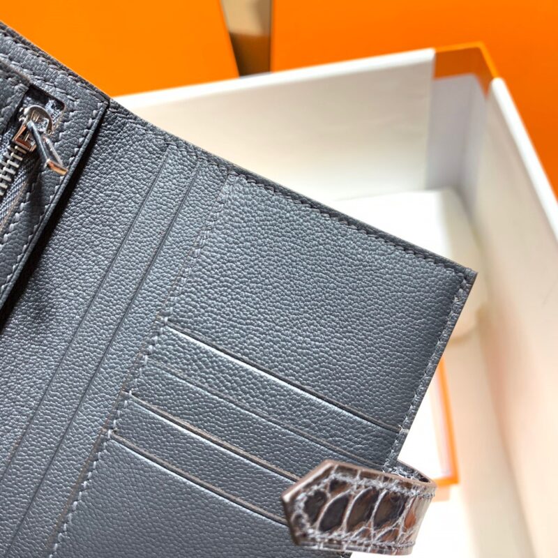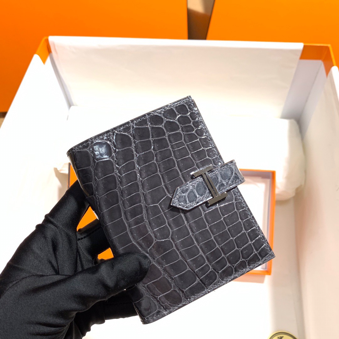 Hermes Bearn Compact Wallet Graphite in Crocodile