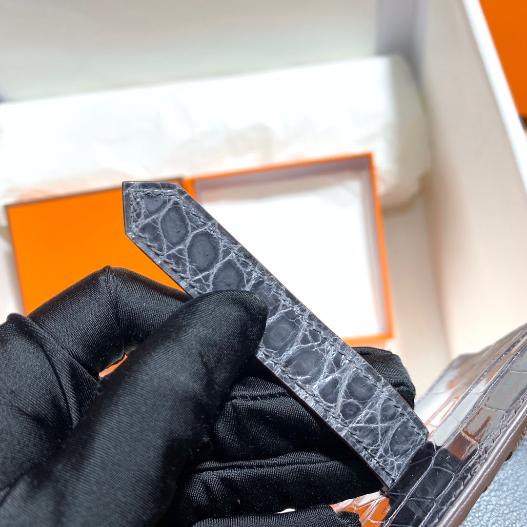 Bearn short walletAmerican crocodile leather. Graphite. Silver buckle. Top craft beeswax thread. Fully handmade