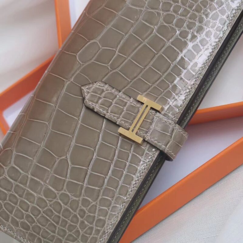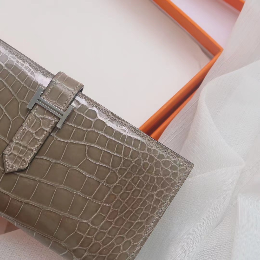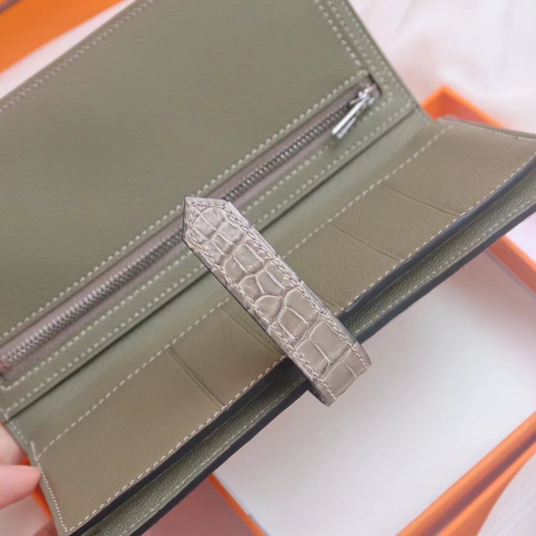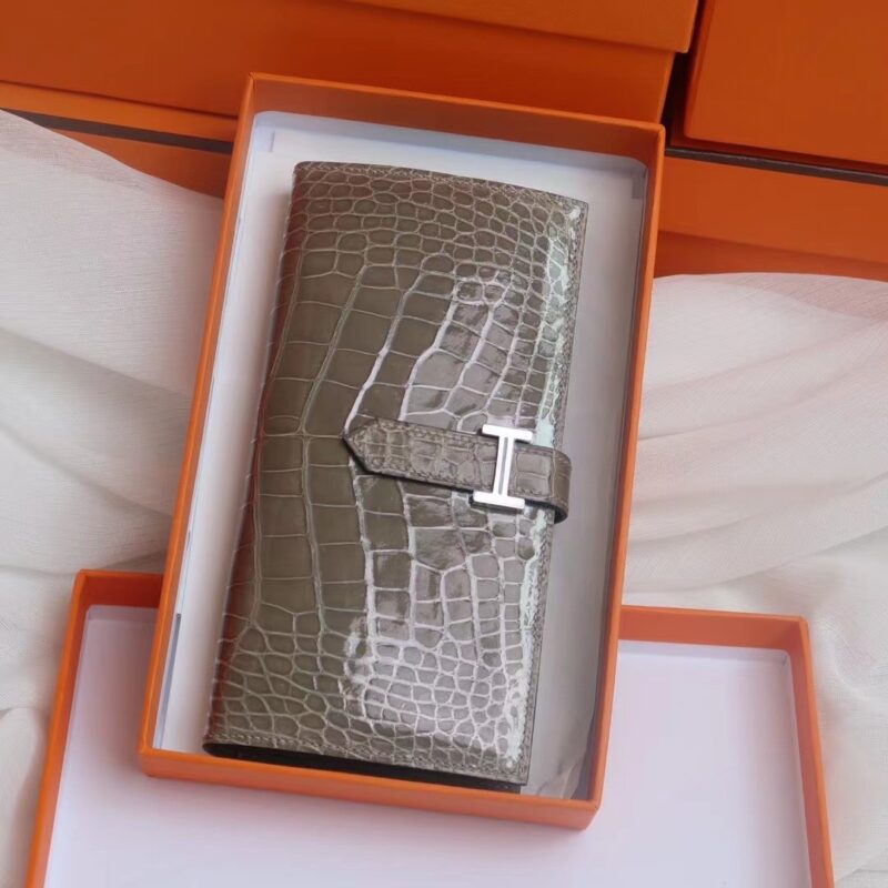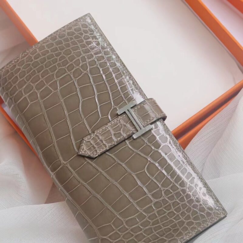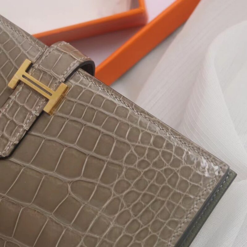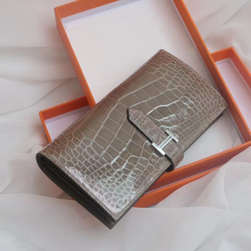 Hermes Bearn Long Wallet Gris Tourterelle in Crocodile